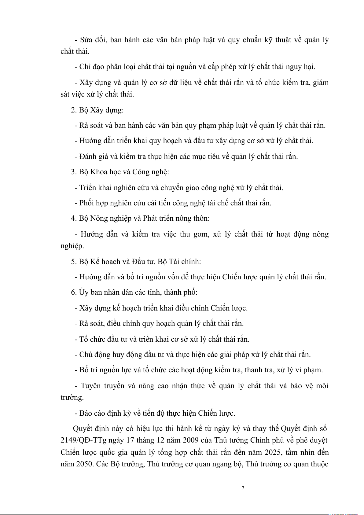 - Chủ trì tổng kết, đánh giá và giám sát thực hiện Chiến lược quản lý chất thải rắn. 6
