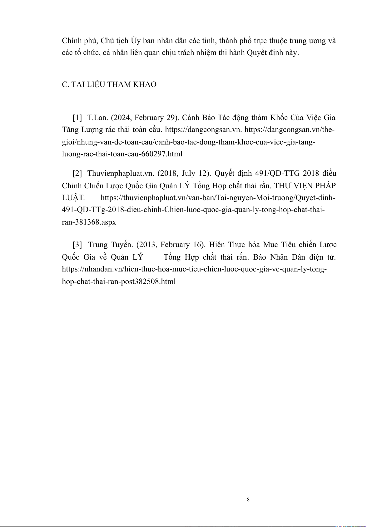 các tổ chức, cá nhân liên quan chịu trách nhiệm thi hành Quyết định này. C. TÀI LIỆU THAM KHẢO