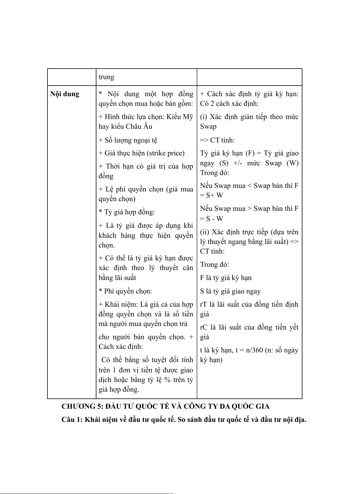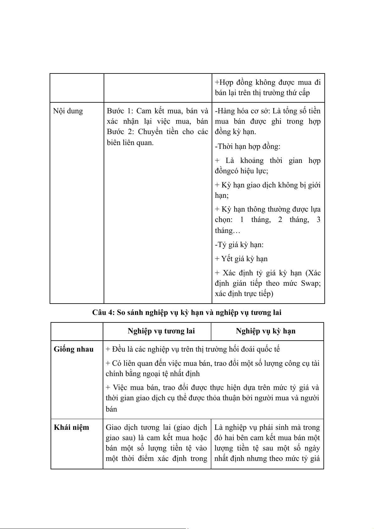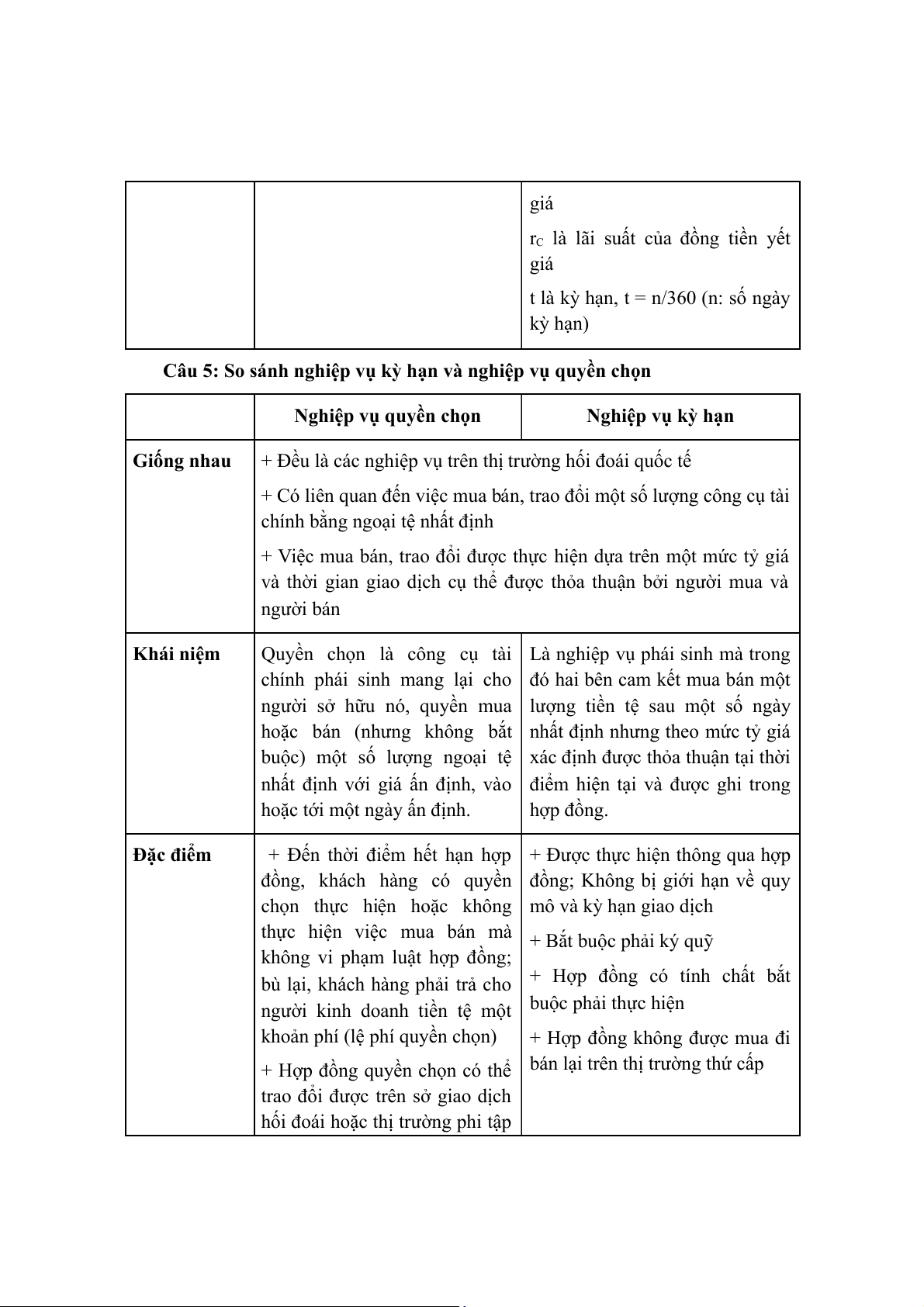 Câu 5: So sánh nghiệp vụ kỳ hạn và nghiệp vụ quyền chọn