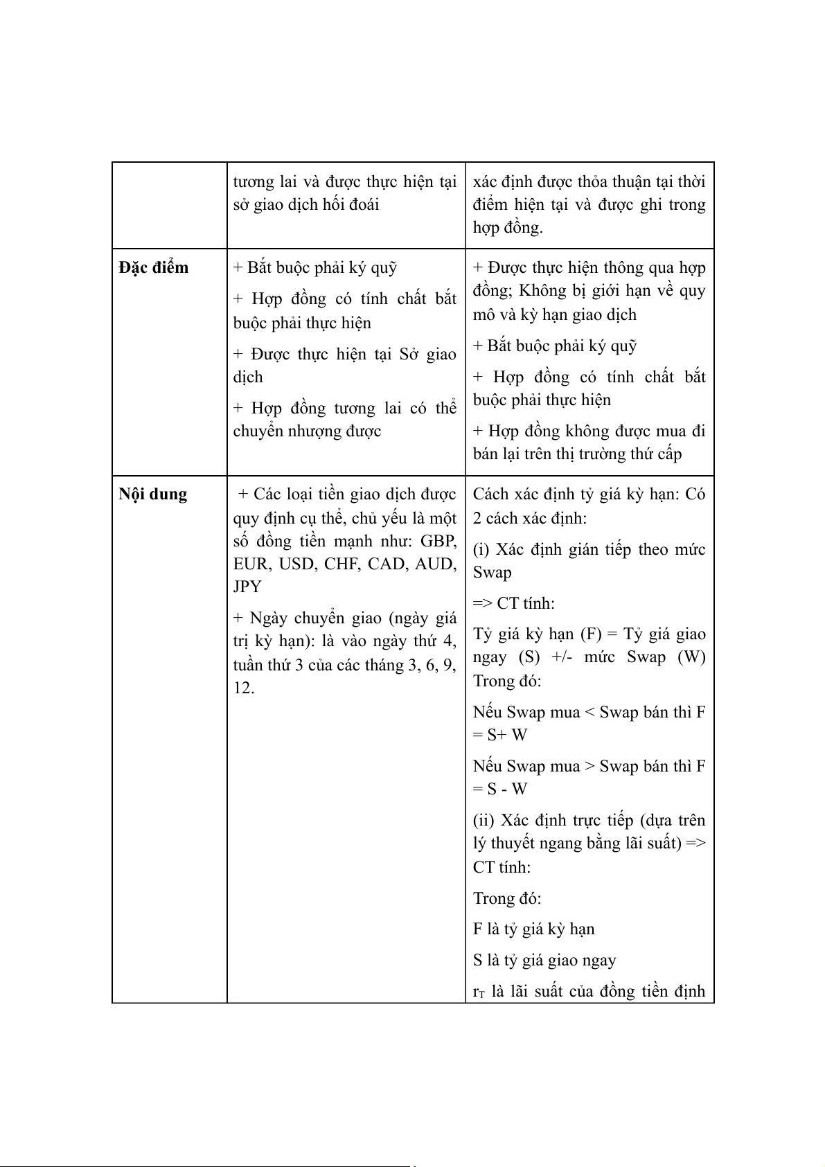* Nội dung một hợp đồng + Cách xác định tỷ giá kỳ hạn: