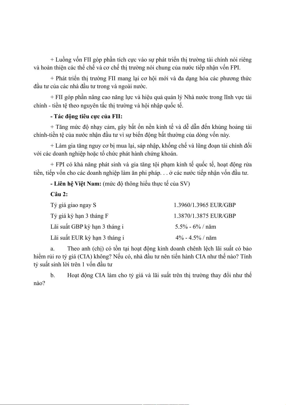 Câu 1: Vai trò tích cực và tác động tiêu cực của đầu tư quốc tế gián tiếp. Liên