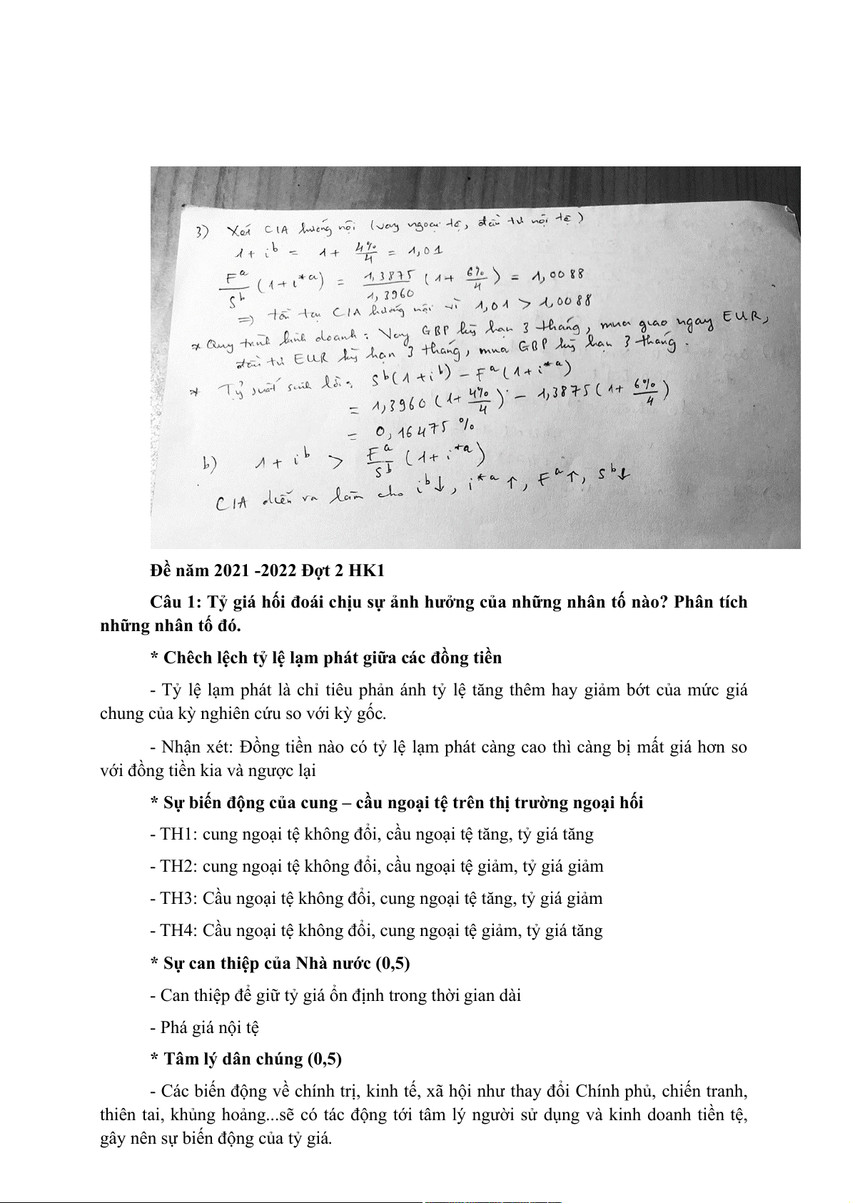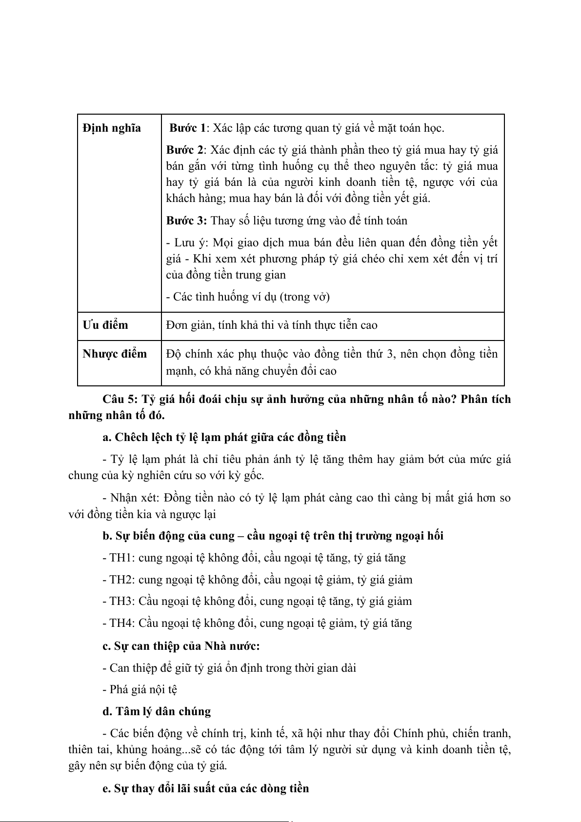 Câu 1: Tỷ giá hối đoái chịu sự ảnh hưởng của những nhân tố nào? Phân tích
