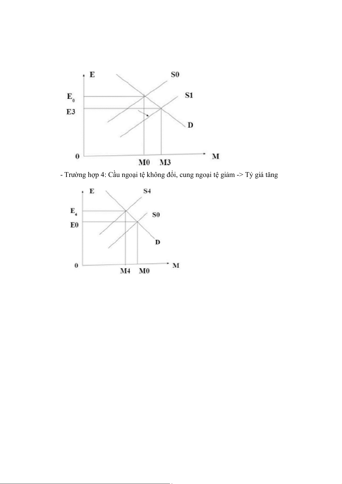 - TH4: Cầu ngoại tệ không đổi, cung ngoại tệ giảm, tỷ giá tăng