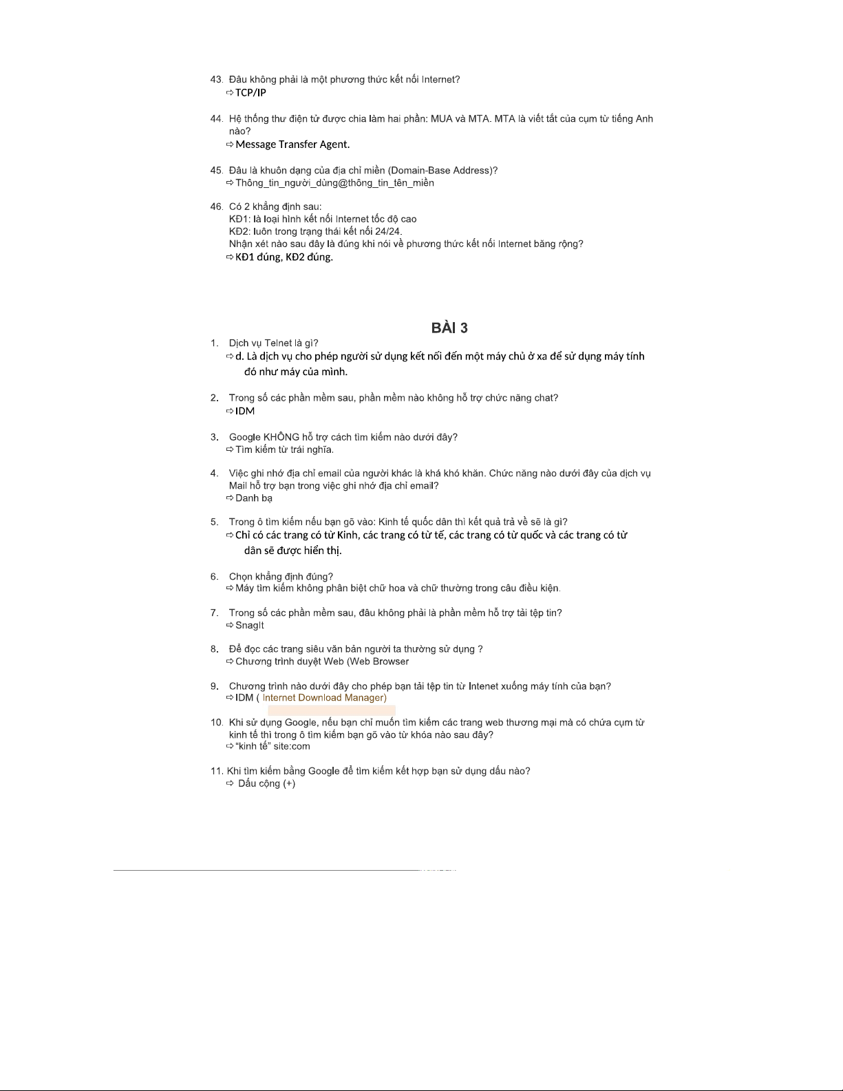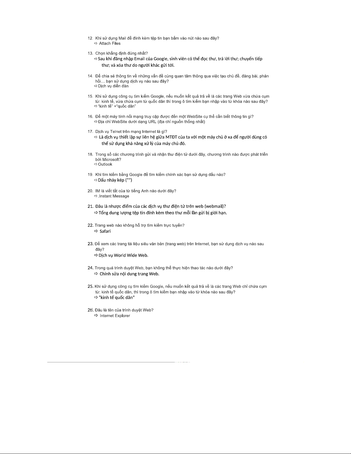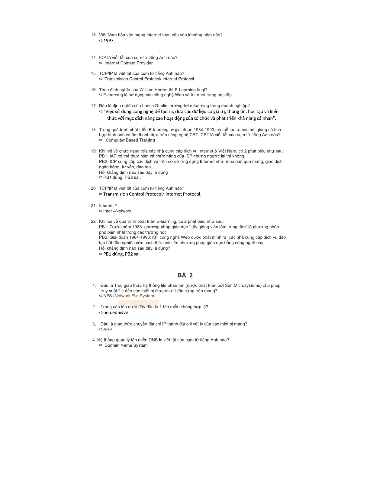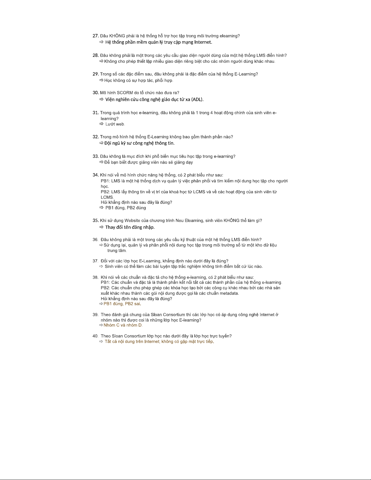 Danh Sách Câu Hỏi - Tổng Hợp Kiến Thức E-Learning và Internet