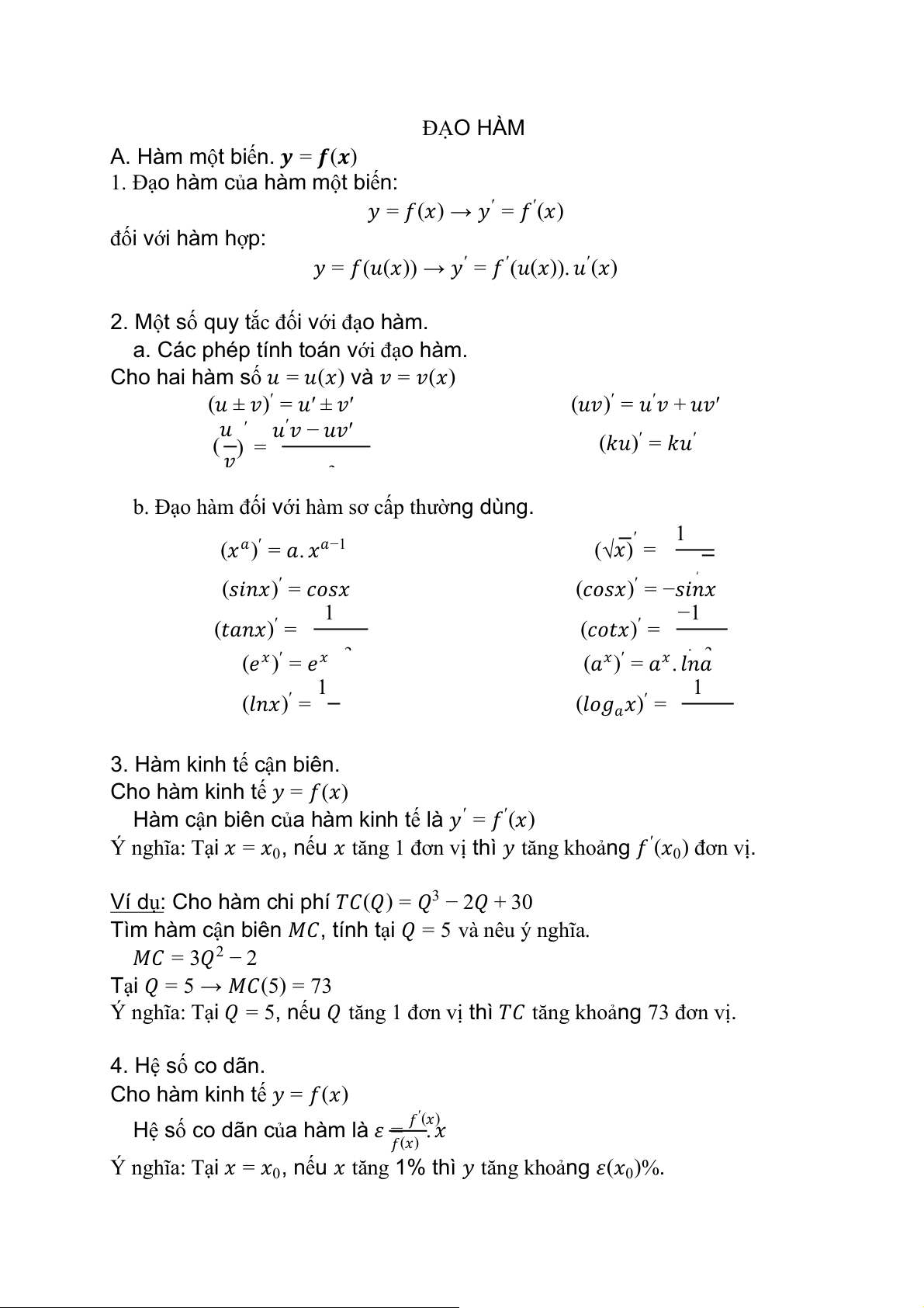 Hàm cận biên của hàm kinh tế là 𝑦′ = 𝑓′(𝑥)