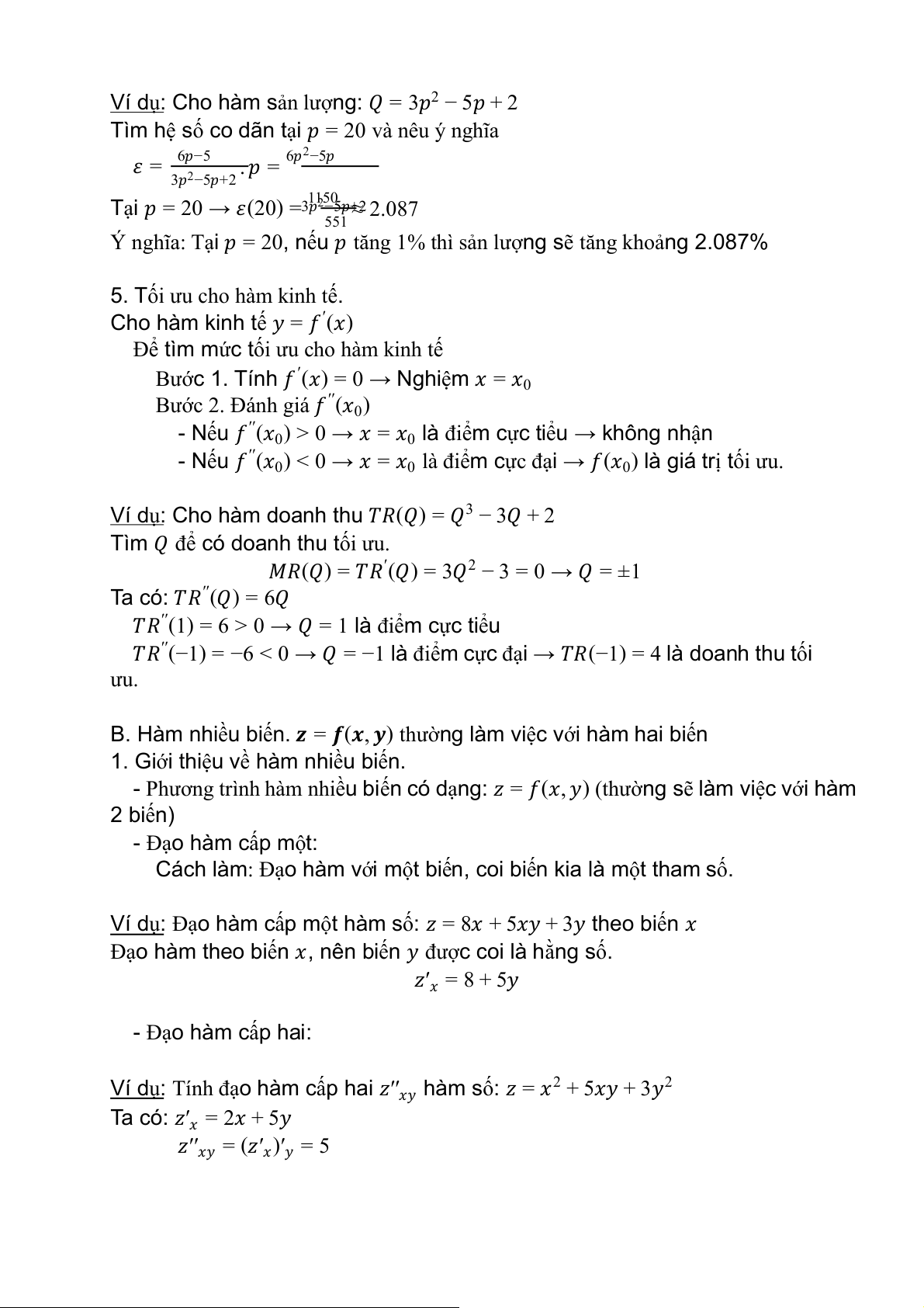 Ý nghĩa: Tại 𝑄 = 5, nếu 𝑄 tăng 1 đơn vị thì 𝑇𝐶 tăng khoảng 73 đơn vị. 4. Hệ số co dãn.