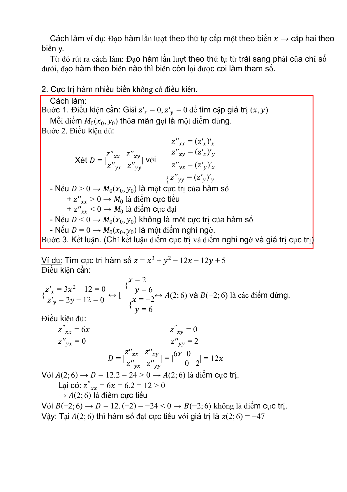 2. Cực trị hàm nhiều biến không có điều kiện. Cách làm: