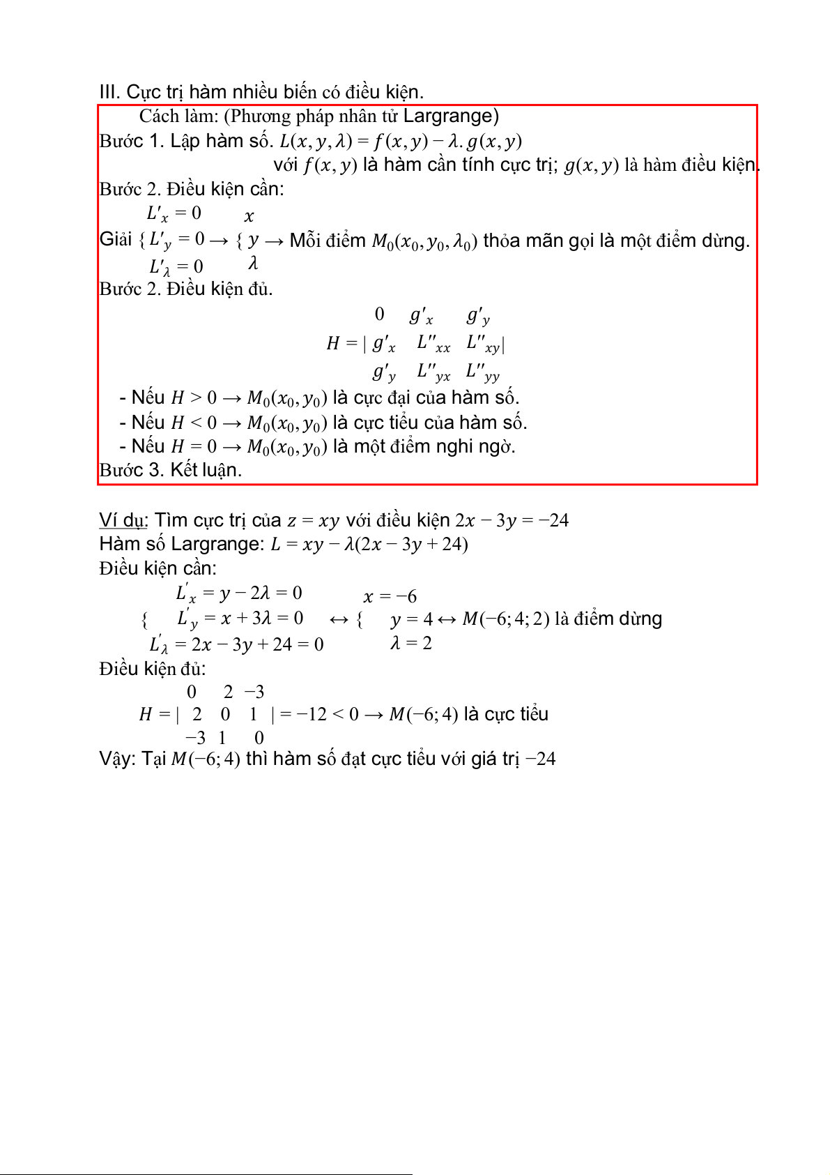 với 𝑓(𝑥, 𝑦) là hàm cần tính cực trị; 𝑔(𝑥, 𝑦) là hàm điều kiện.