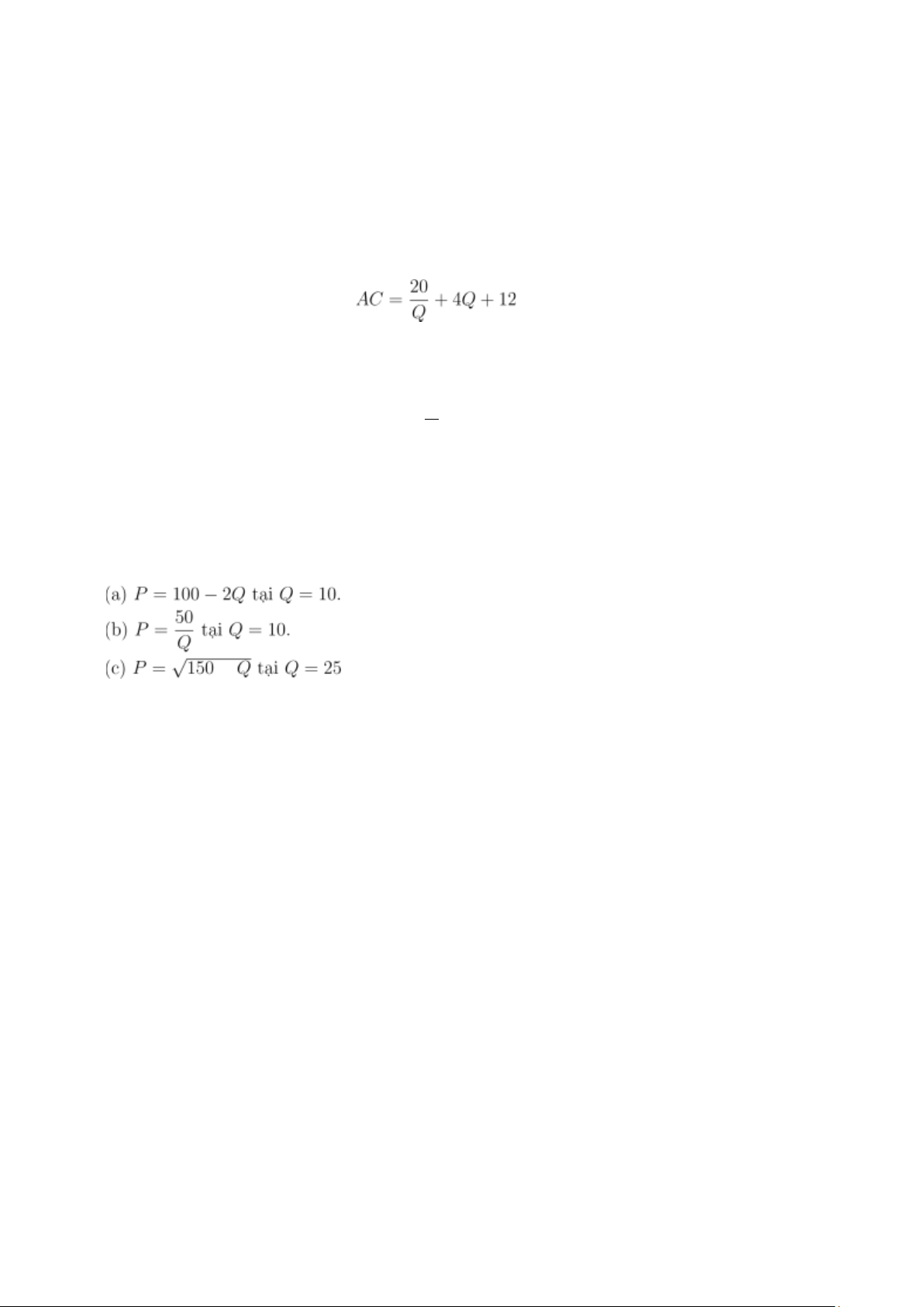 Bài 5. Tính độ co dãn của hàm cầu tại các điểm tương ứng. .