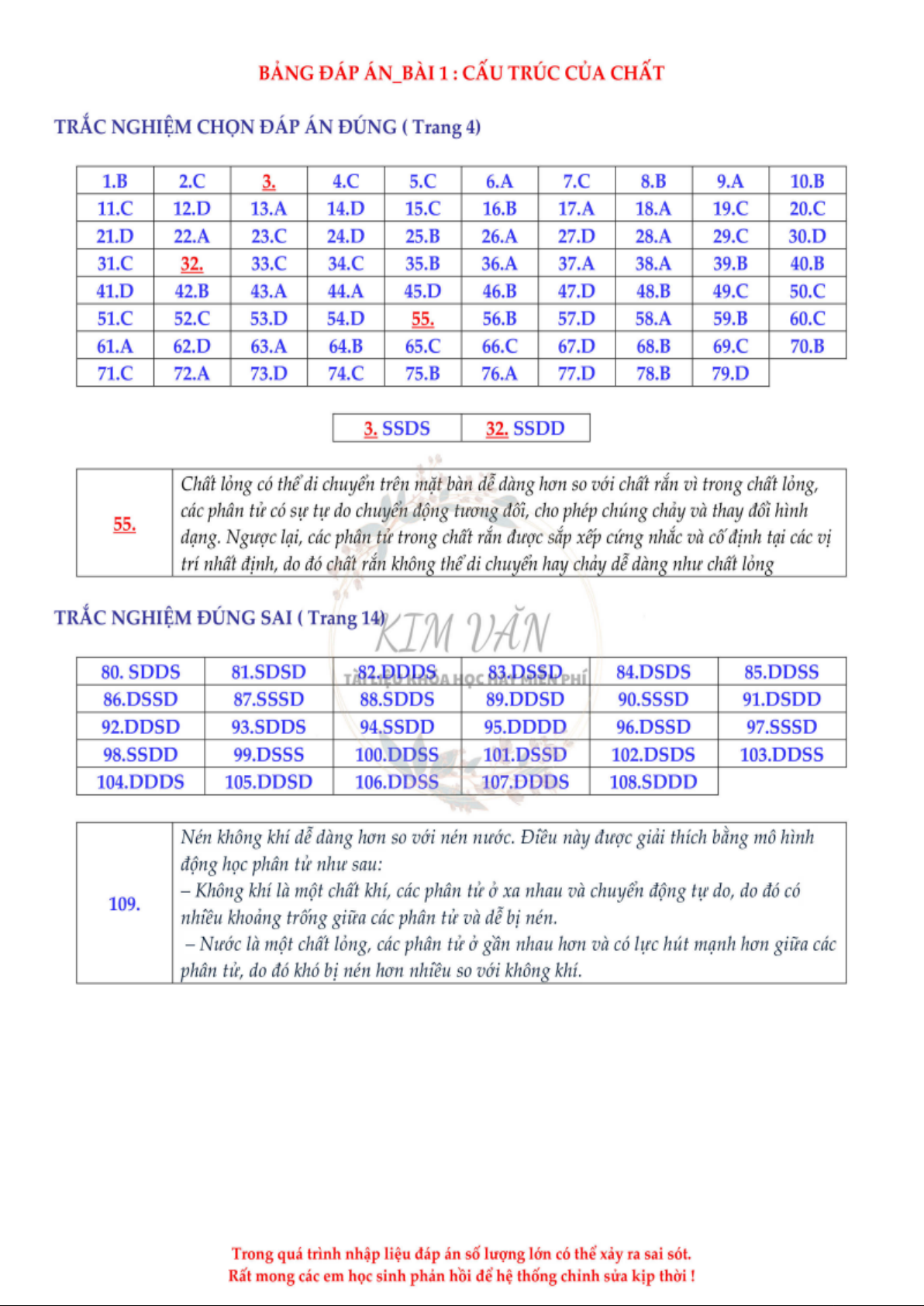 Tài liệu sưu tầm. Đáp án cấu trúc của chất