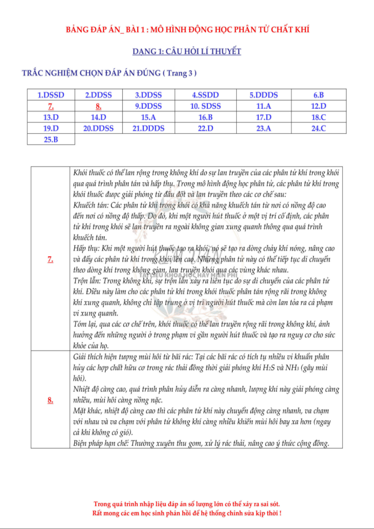 Đáp án bài 1: Mô hình động học phân tử chất khí | Vật lí 12. Tài liệu giúp bạn tham khảo, ôn tập và đạt kết quả cao. Mời đọc đón xem!
