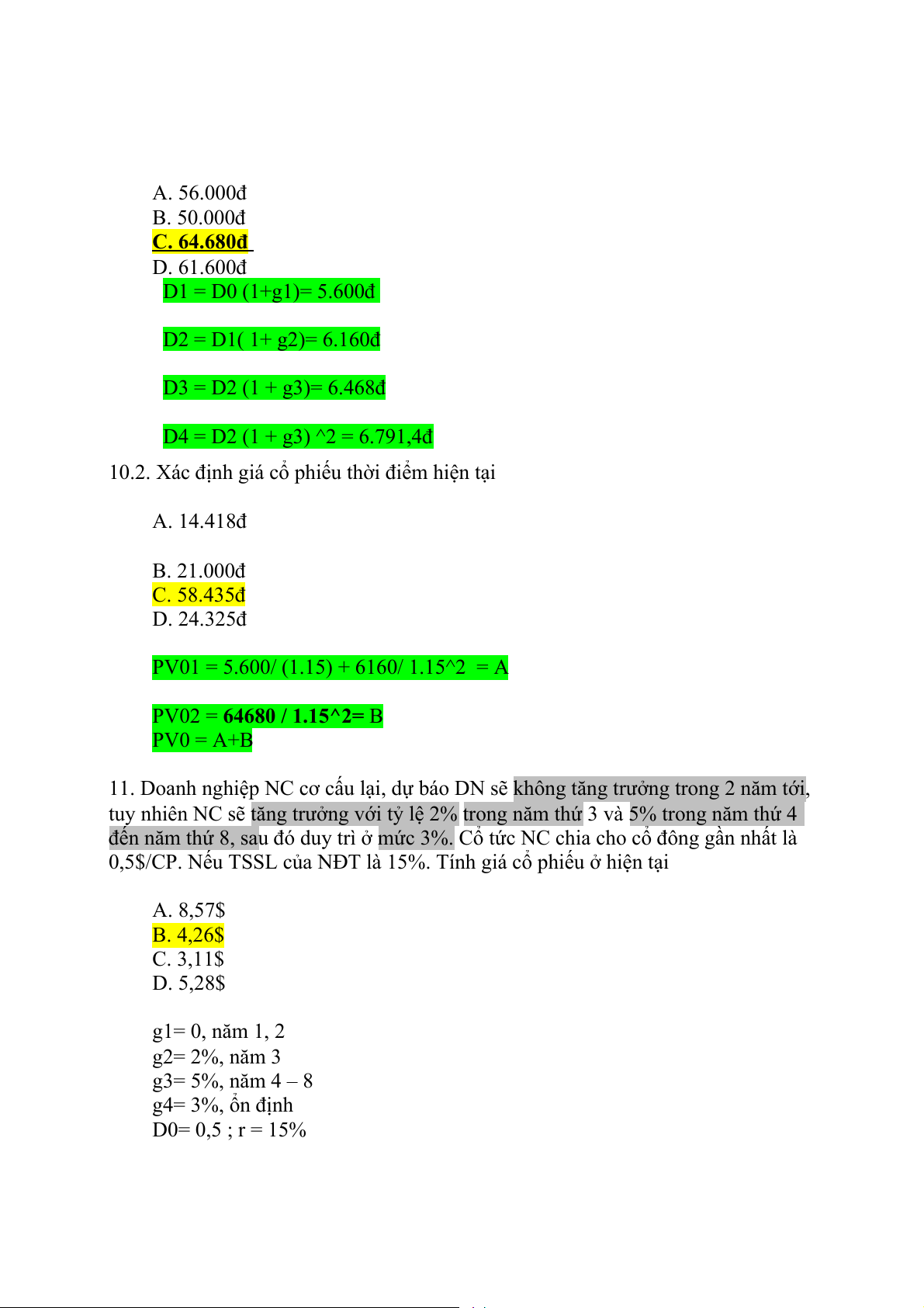 10.2. Xác định giá cổ phiếu thời điểm hiện tại A. 14.418đ B. 21.000đ C. 58.435đ D. 24.325đ