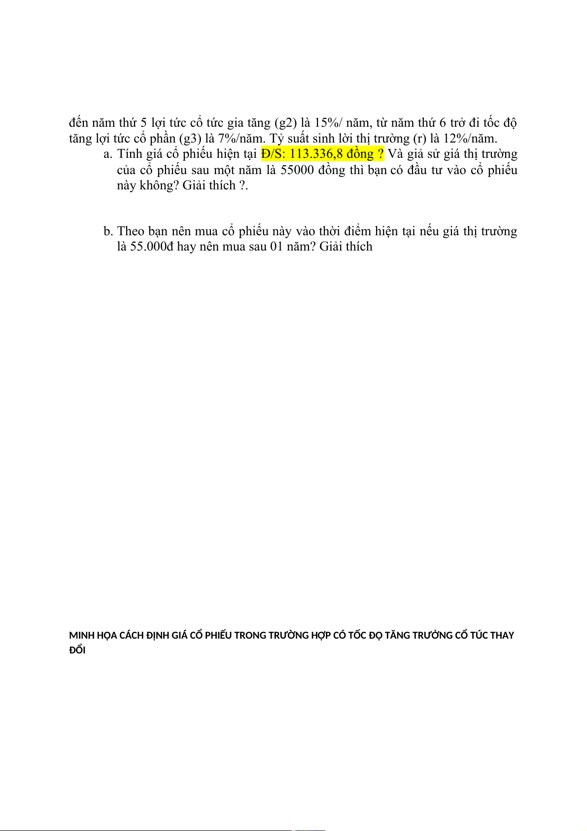 a. Tính giá cổ phiếu hiện tại Đ/S: 113.336,8 đồng ? Và giả sử giá thị trường