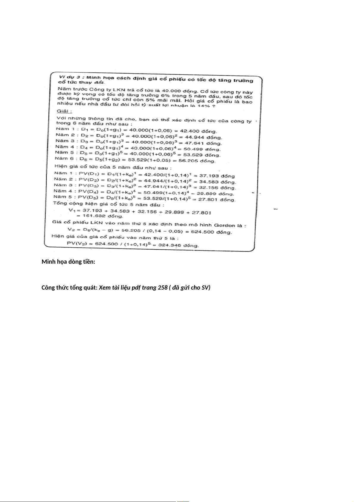 MINH HỌA CÁCH ĐỊNH GIÁ CỔ PHIẾU TRONG TRƯỜNG HỢP CÓ TỐC ĐỘ TĂNG TRƯỞNG CỔ TÚC THAY ĐỔI