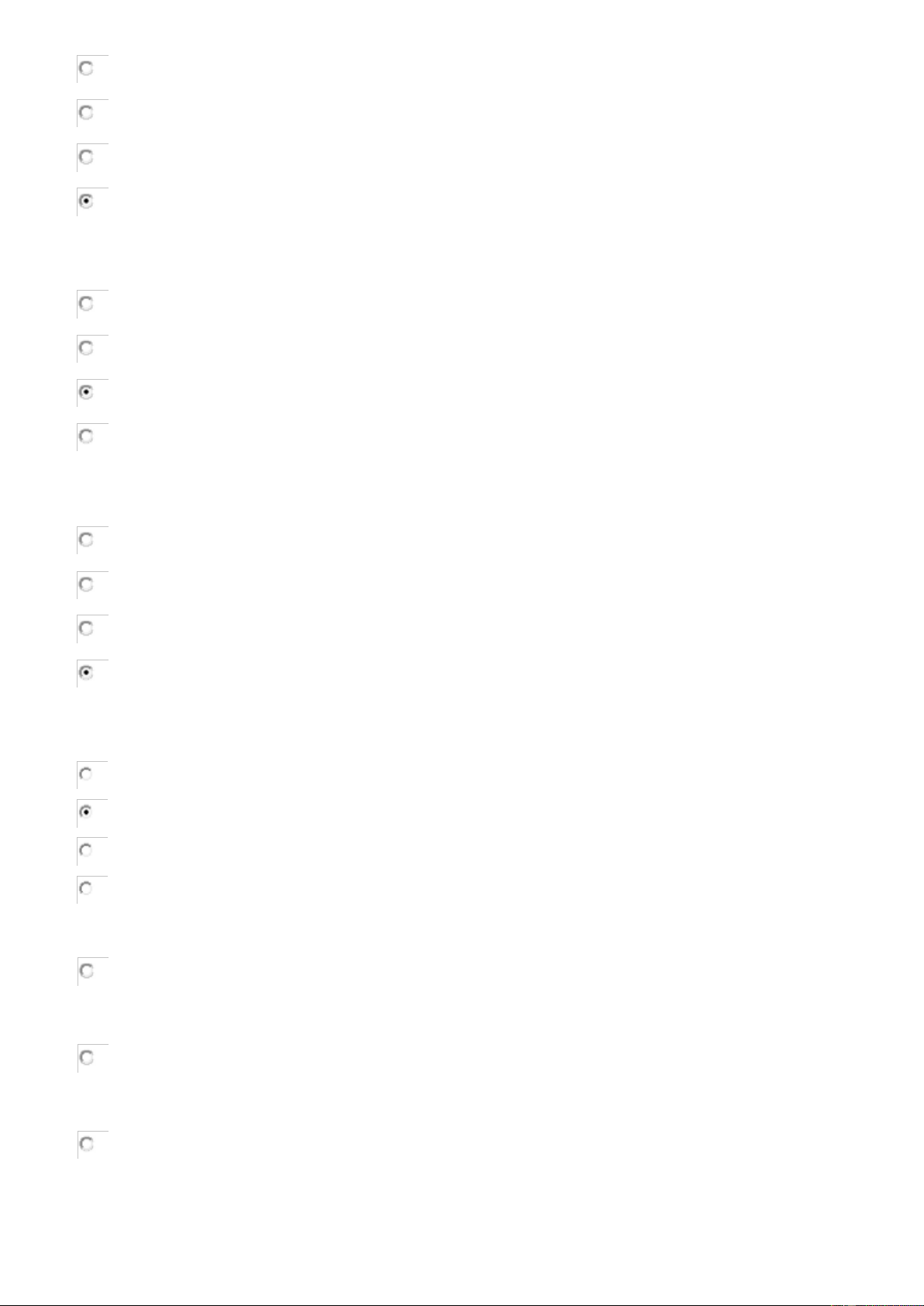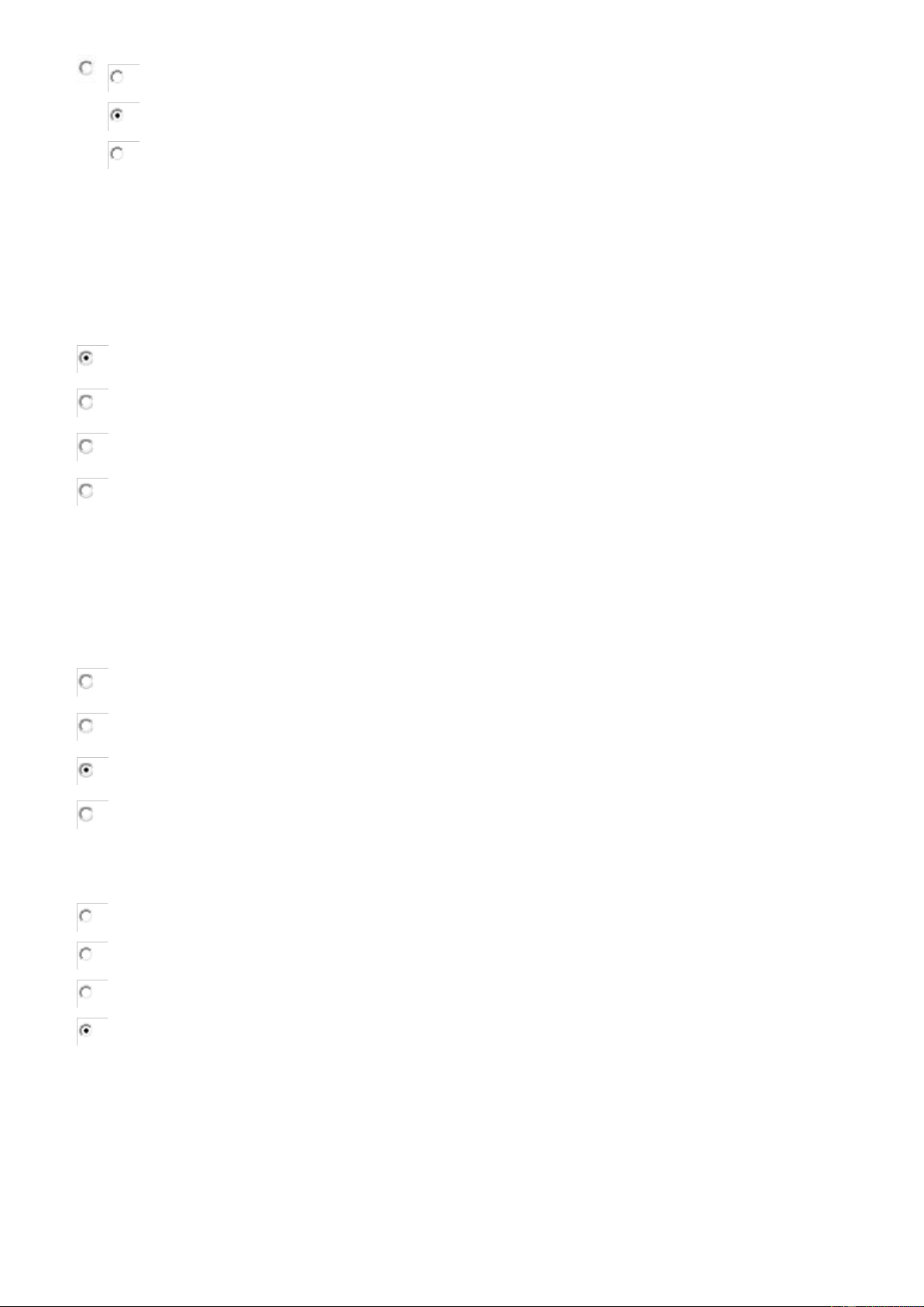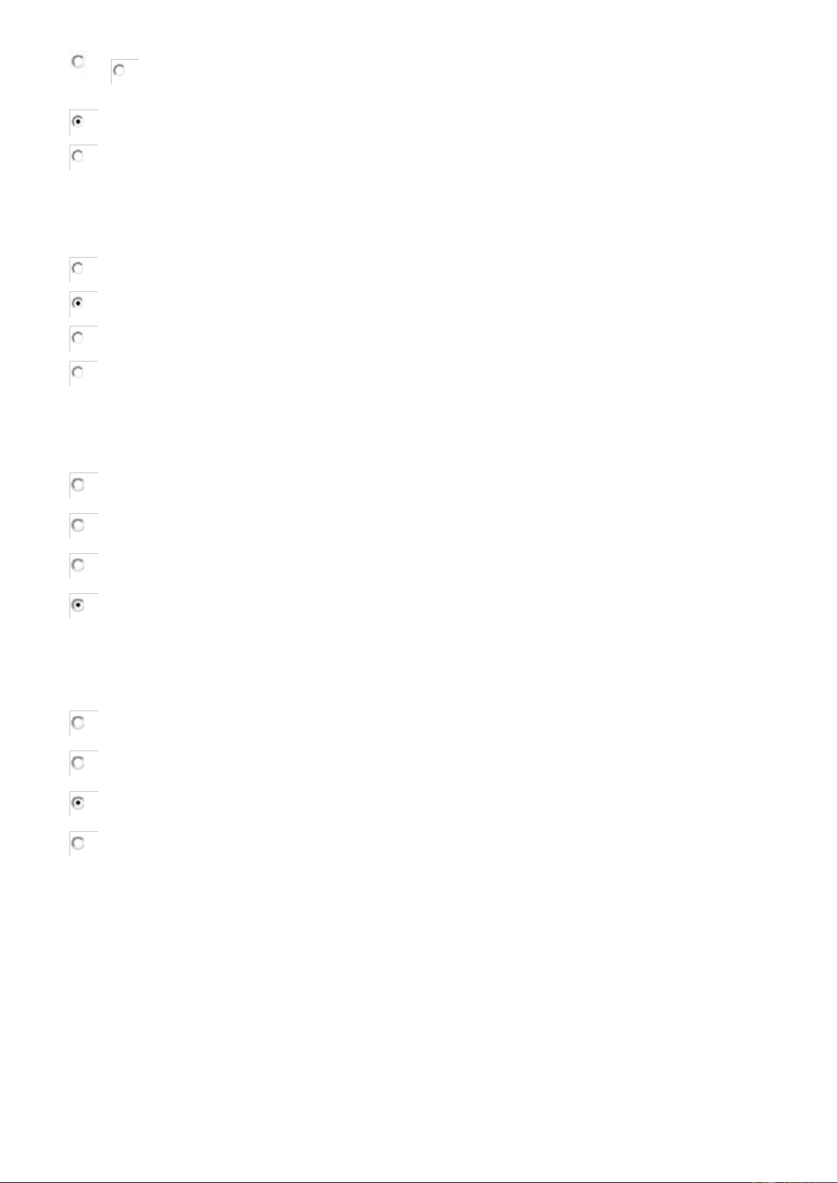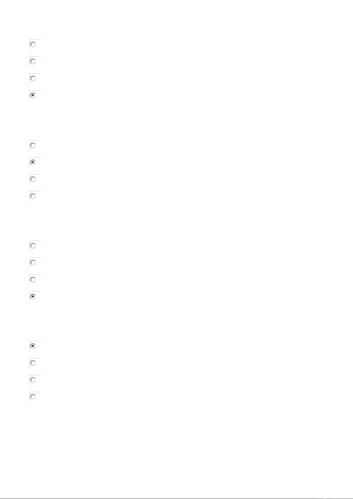Chọn một câu trả lời: a. 1, 3, 4, 2 Downloaded by Bao Chi (baochi1010@gmail.com) lOMoAR cPSD| 59908026 b. 4, 3, 1, 2 c. 1, 4, 3, 2 d. 4, 3, 2, 1 : Câu hỏi 6