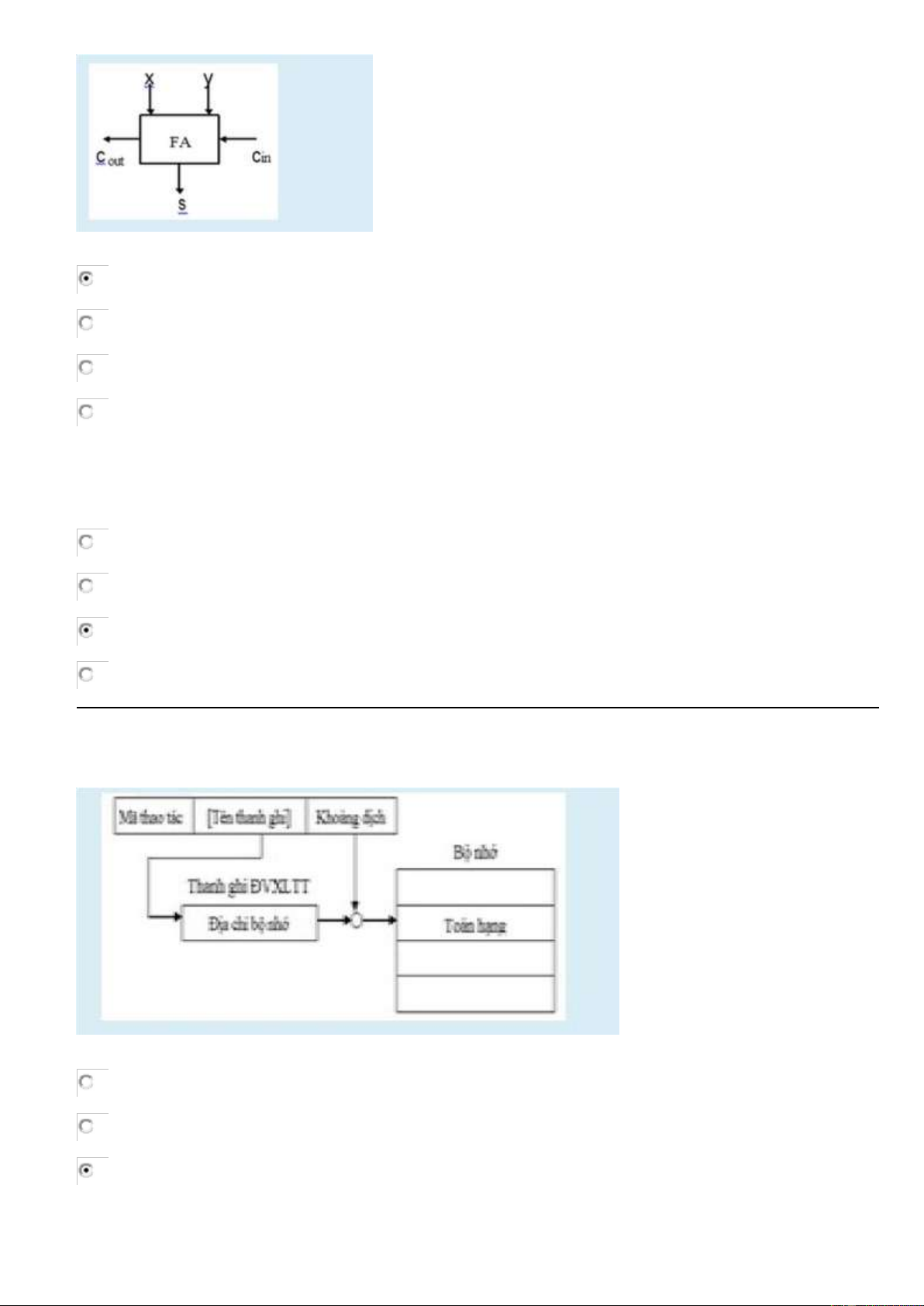 Chọn một câu trả lời: a. Bộ cộng đủ 1 bit b. Bộ cộng đủ n bit c. Bộ dồn kênh d. Bộ cộng Câu hỏi 5