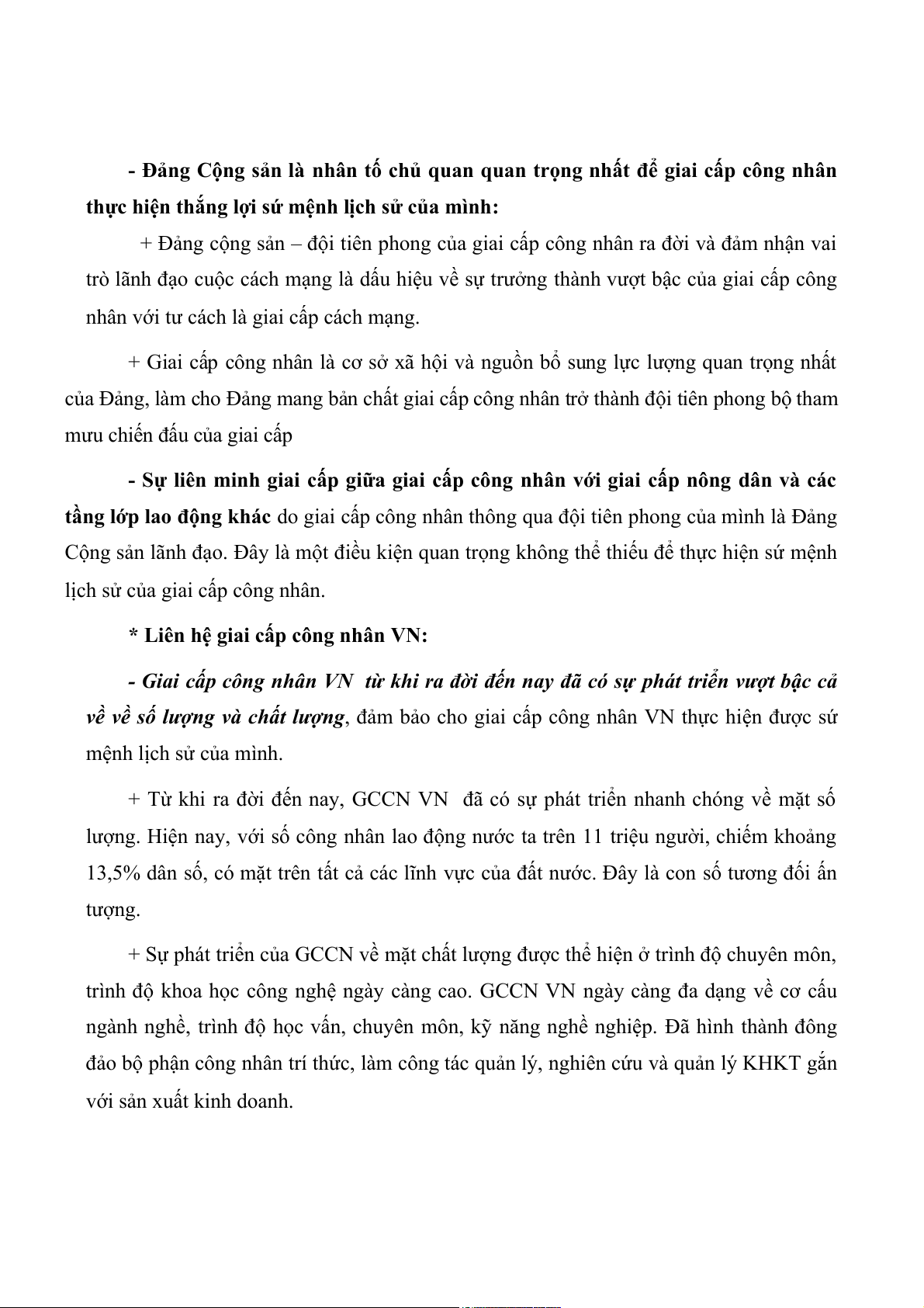 + Giai cấp công nhân là sản phẩm của bản thân nền đại công nghiệp, là chủ thể của
