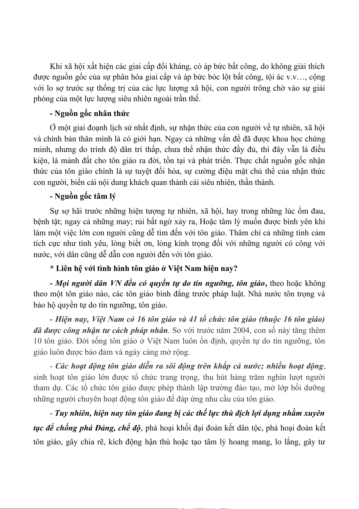 * Liên hệ với tình hình tôn giáo ở Việt Nam hiện nay?