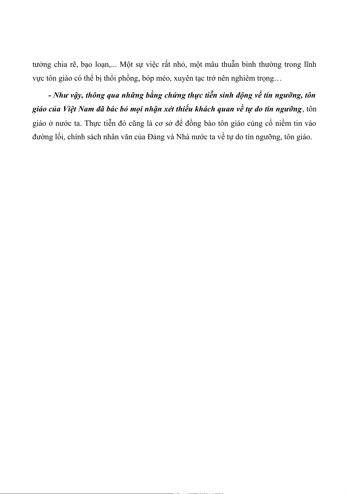giáo ở nước ta. Thực tiễn đó cũng là cơ sở để đồng bào tôn giáo củng cố niềm tin vào