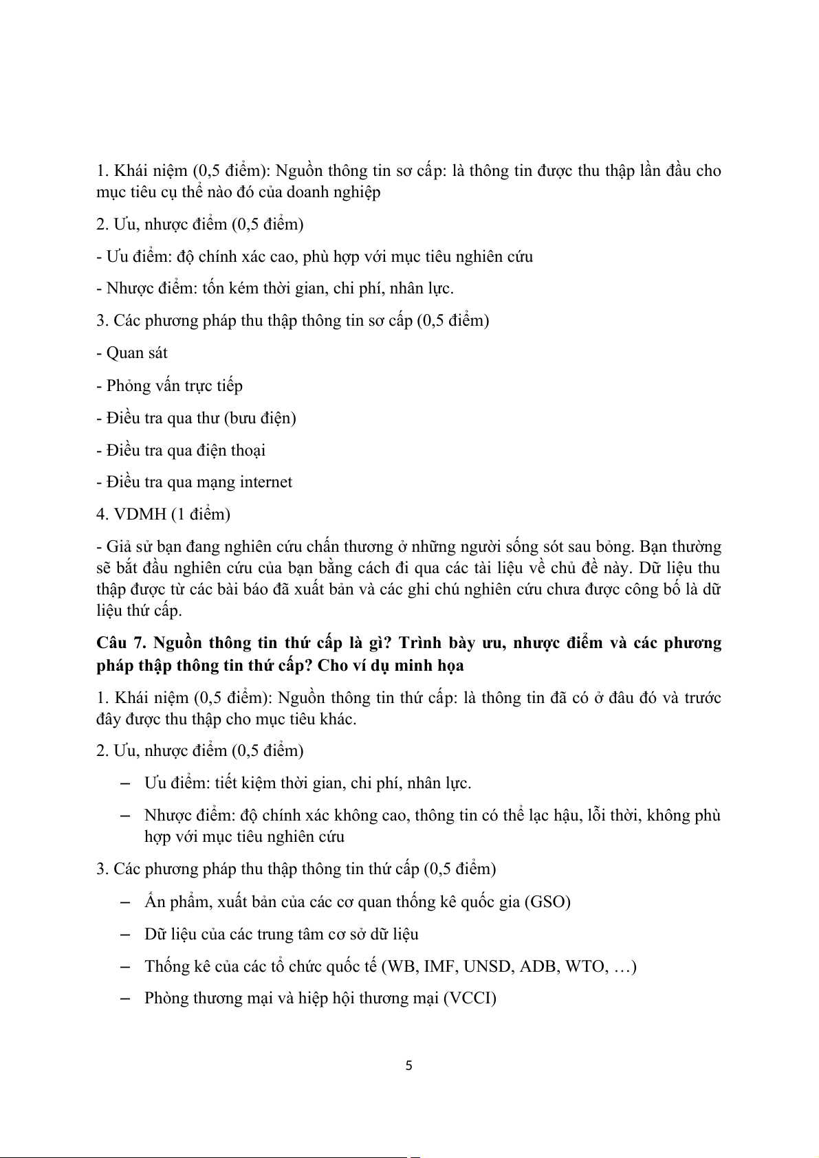 Câu 6. Nguồn thông tin sơ cấp là gì? Trình bày ưu, nhược điểm và các phương pháp