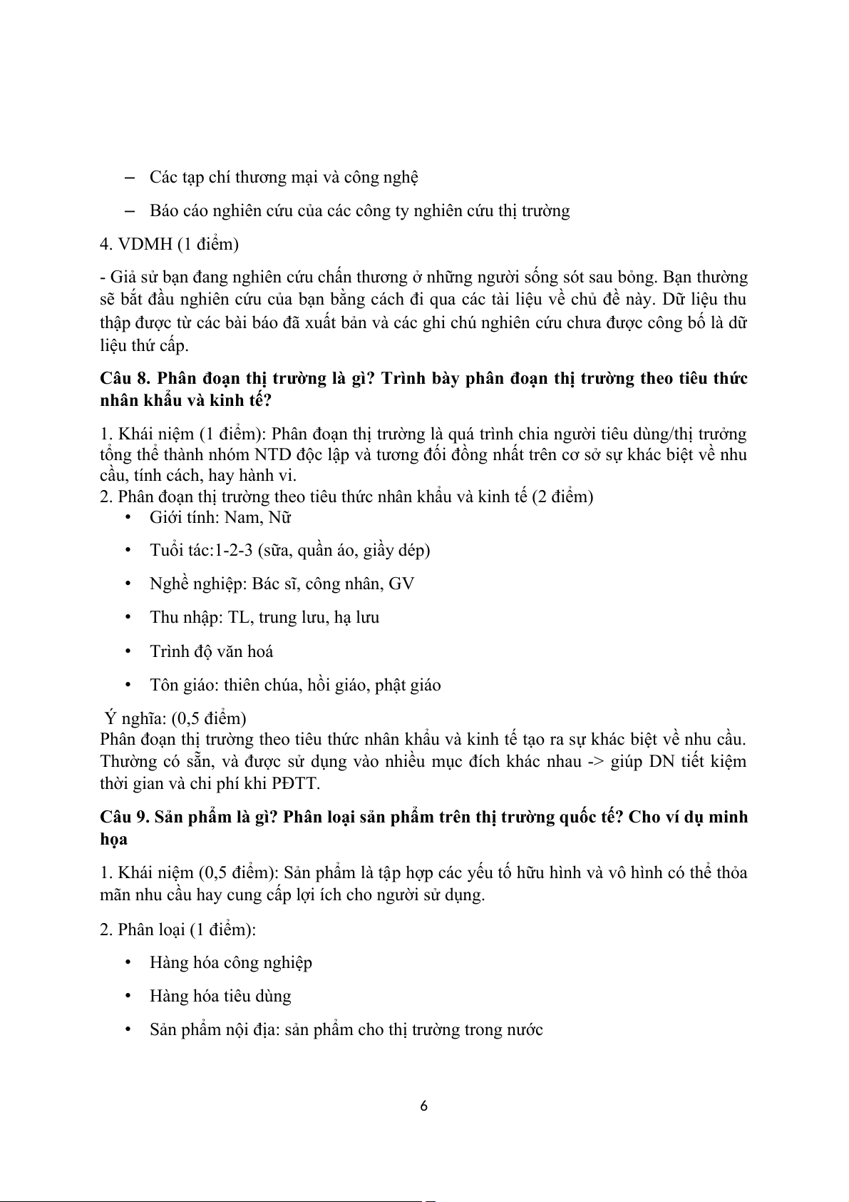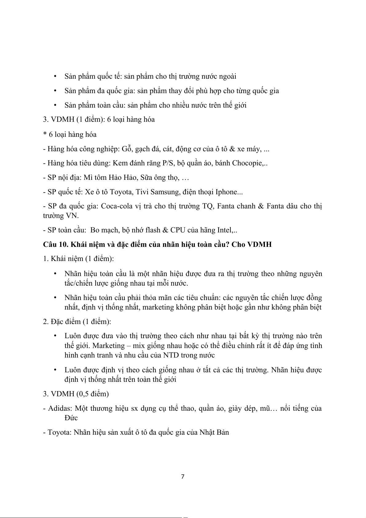 biệt, khi đó thị trường toàn cầu chẳng qua là sự mở rộng thị trường quốc gia về mặt địa lý. 2. VDMH (1 điểm)