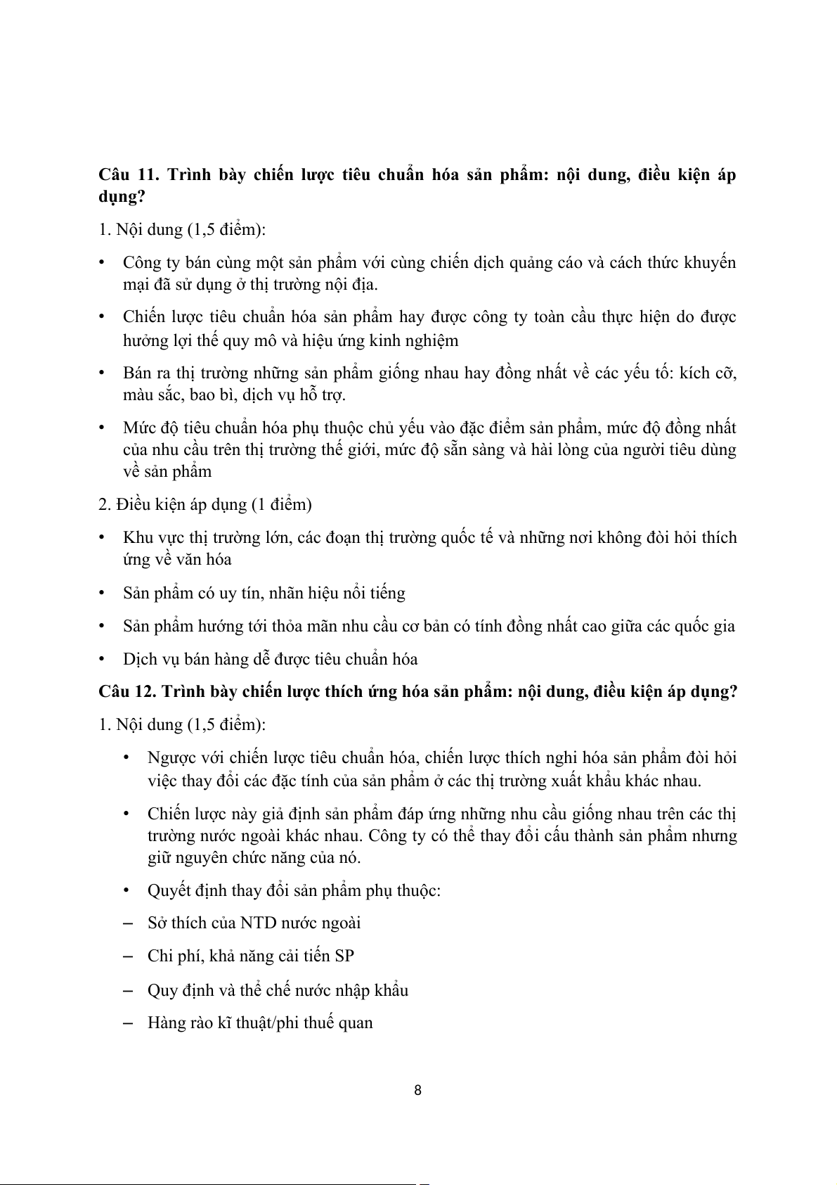 Câu 12. Trình bày chiến lược thích ứng hóa sản phẩm: nội dung, điều kiện áp dụng? 1. Nội dung (1,5 điểm): •