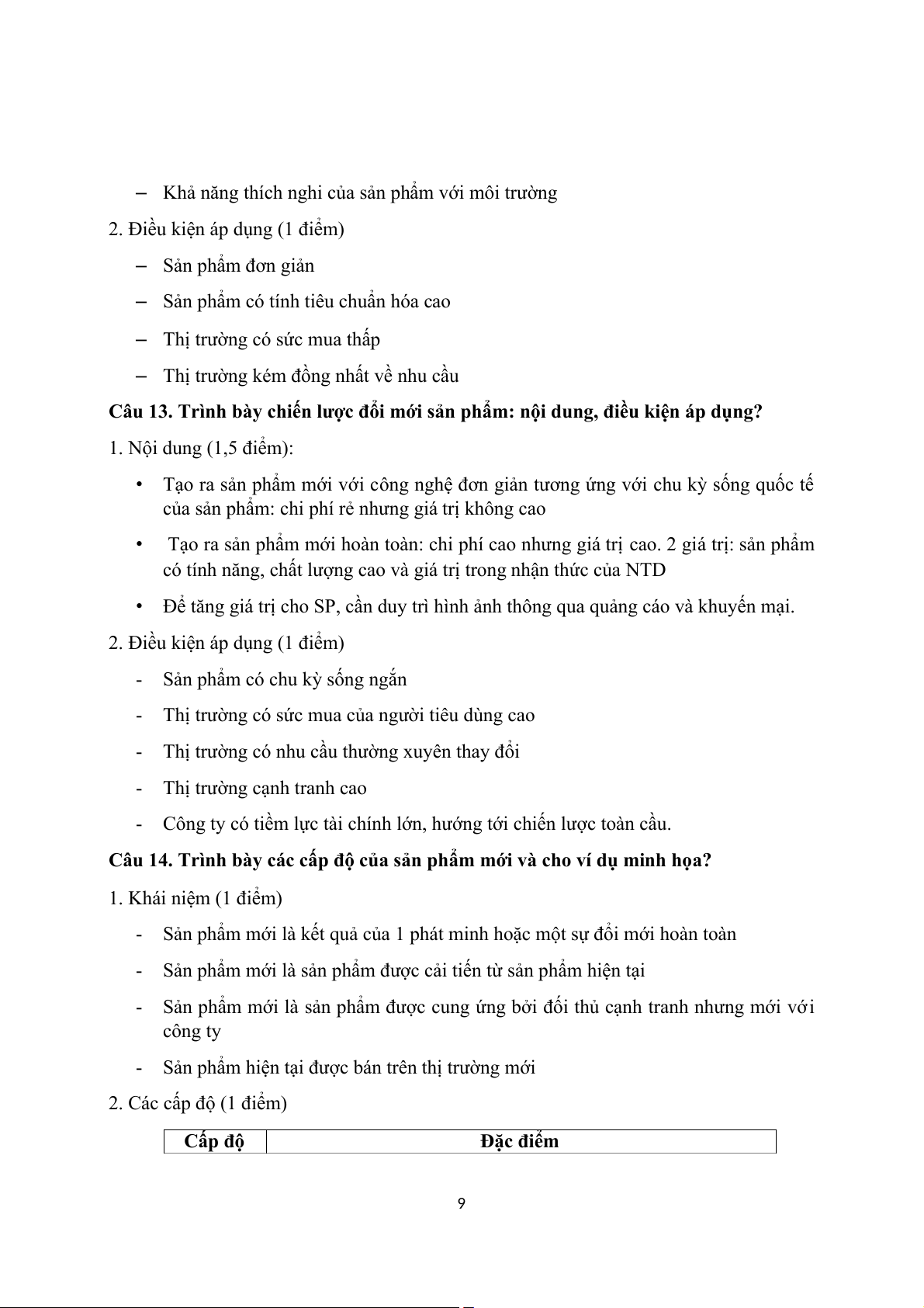 Câu 13. Trình bày chiến lược đổi mới sản phẩm: nội dung, điều kiện áp dụng? 1. Nội dung (1,5 điểm): •