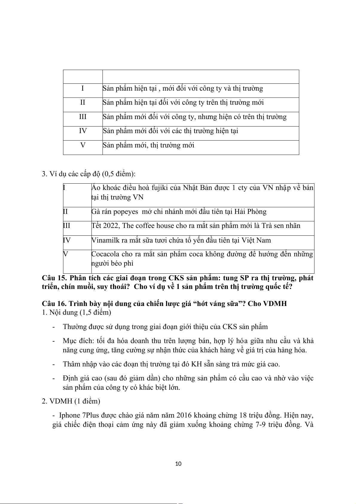 Câu 16. Trình bày nội dung của chiến lược giá “hớt váng sữa”? Cho VDMH