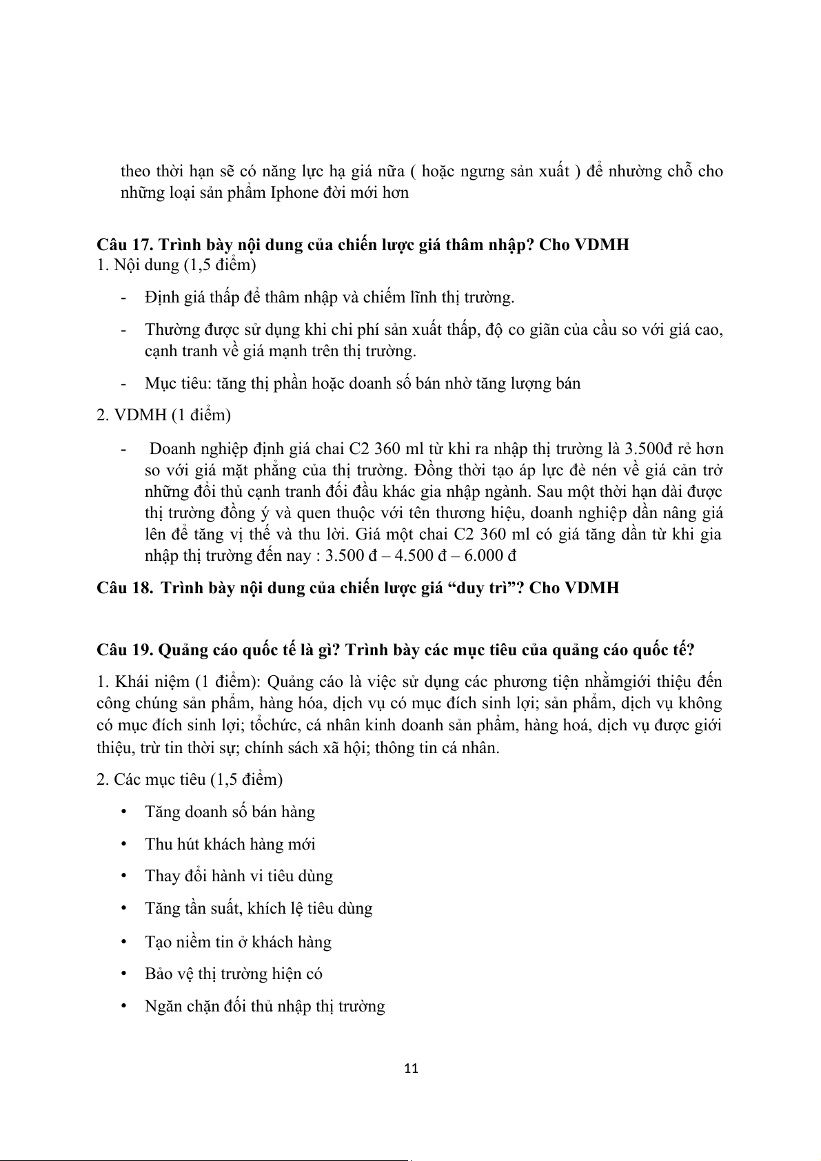 Câu 17. Trình bày nội dung của chiến lược giá thâm nhập? Cho VDMH