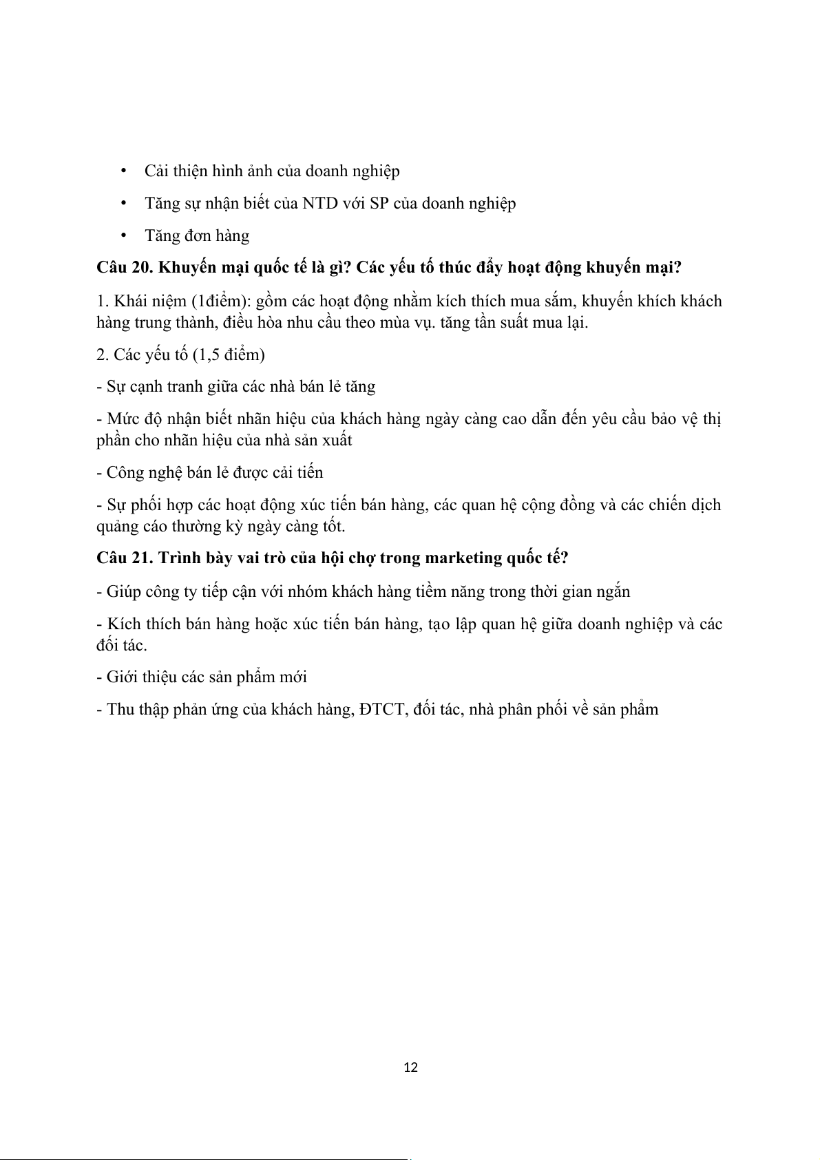 ĐÁP ÁN CÂU HỎI ÔN TẬP HỌC PHẦN MARKETING QUỐC TẾ