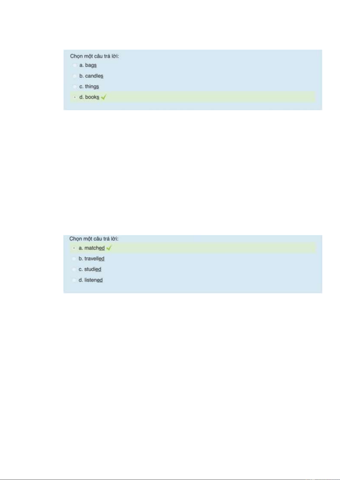 a. matched Câu trả lời đúng b. candles b. listened c. things c. studied