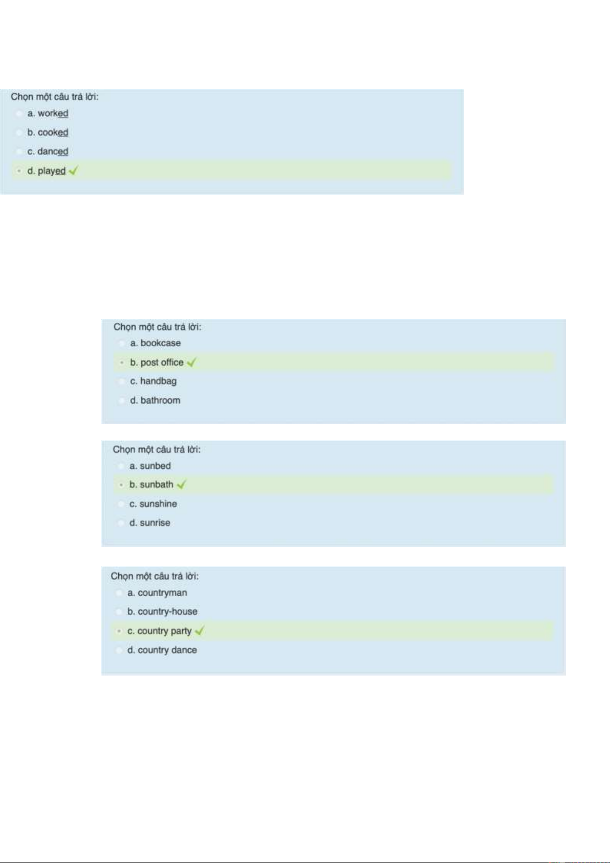 a. liked Câu trả lời đúng b. served lOMoAR cPSD| 59943509 c. arrived a. motor car d. jogged