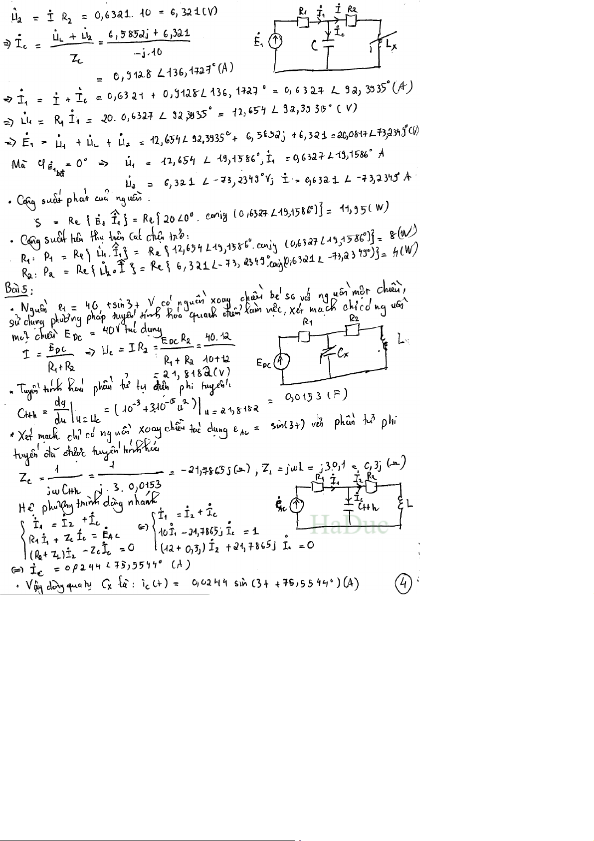 j = 0,1 2 sin(100t )(A); R = 20 ; R = 5 ; 1 2 − L3 R = 25 ;L = 0,5H ; 4 C =4.10 F ; R phi 3 3 3 4 E j