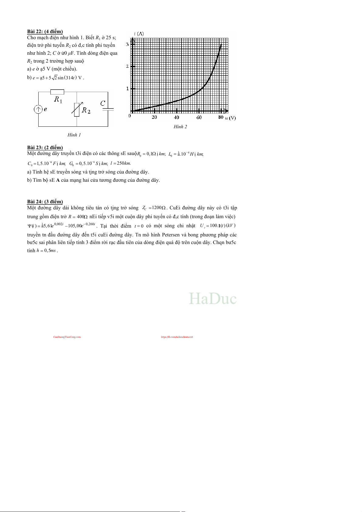 Câu 15. Cho ñư=ng dây dài có các thông sE cơ b3n như sau:R = 0 / km ; 0 ( ) G = 0 S / km ; −3 L = 4.10 H /km ; 7 C 4.10− =
