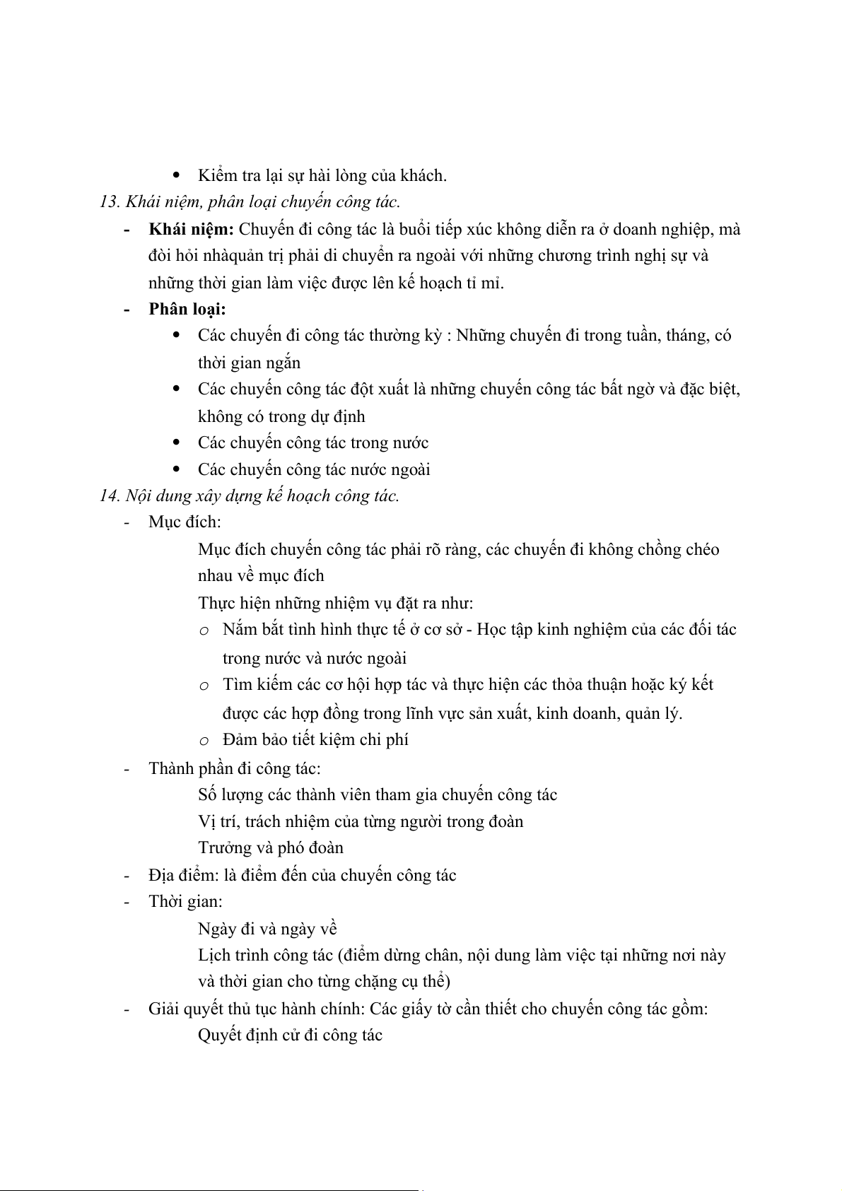 13. Khái niệm, phân loại chuyến công tác.