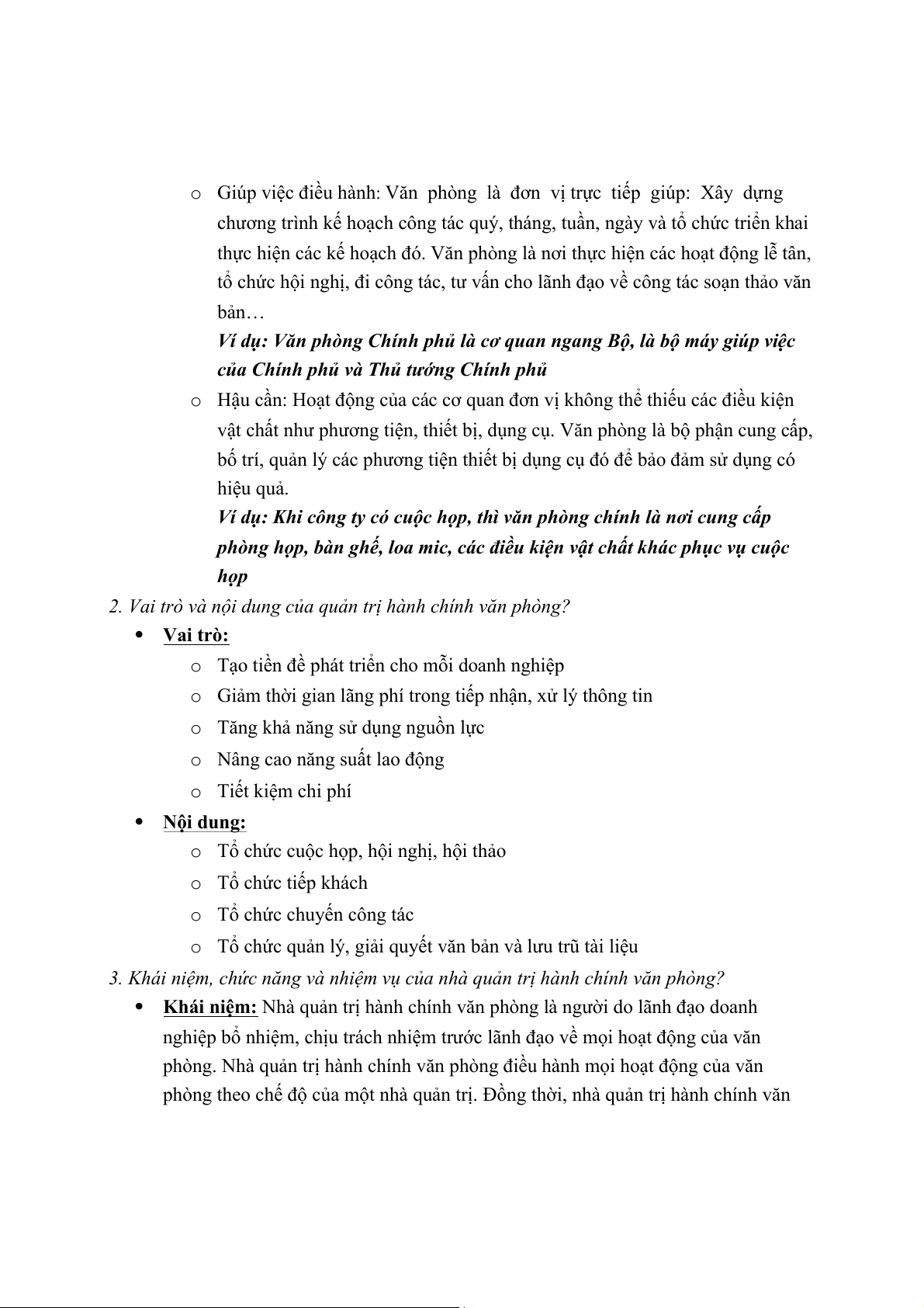 2. Vai trò và nội dung của quản trị hành chính văn phòng? Vai trò: o
