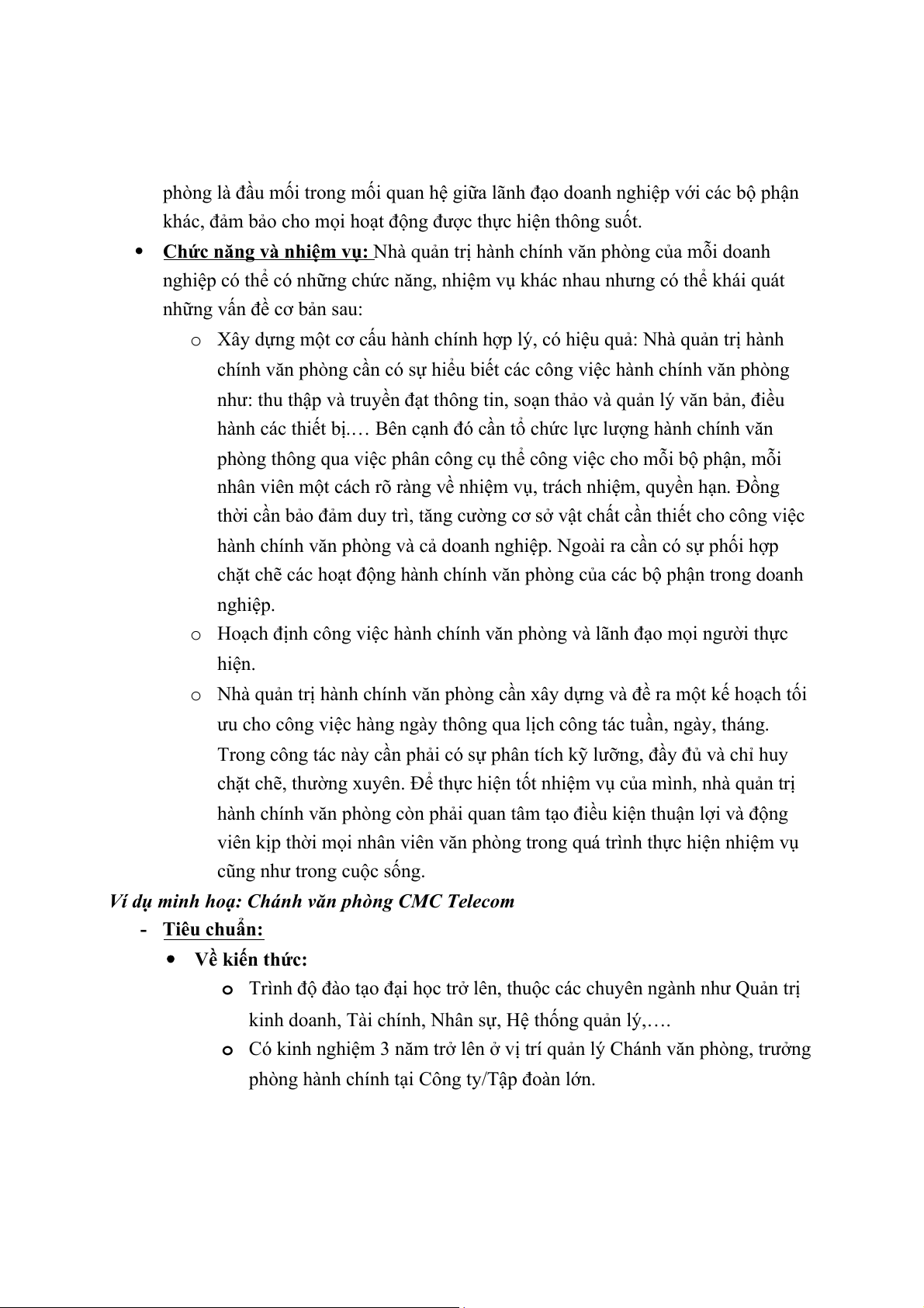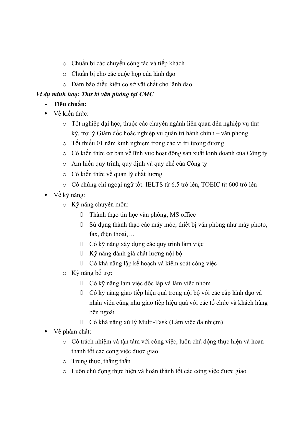 Ví dụ minh hoạ: Chánh văn phòng CMC Telecom - Tiêu chuẩn: