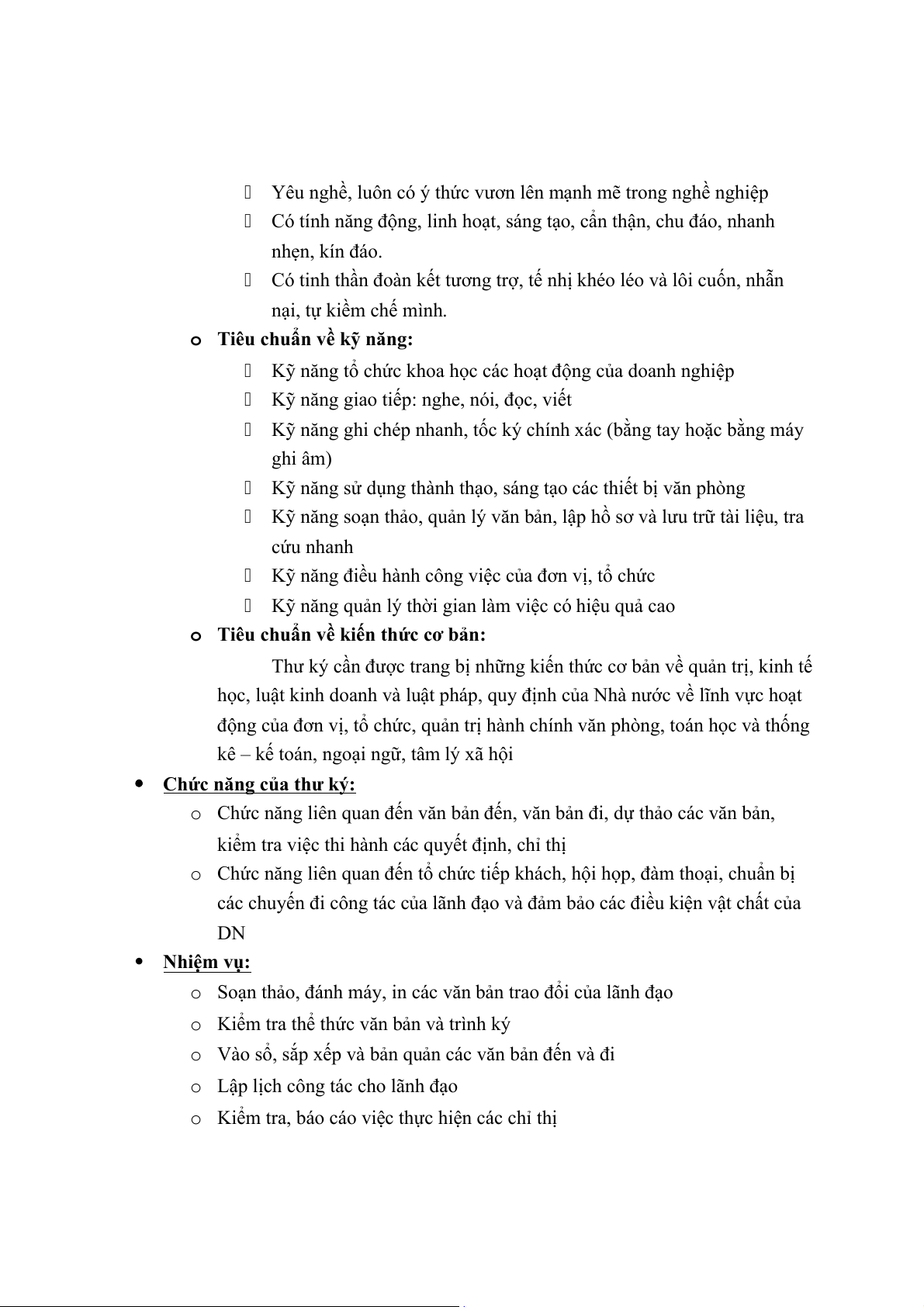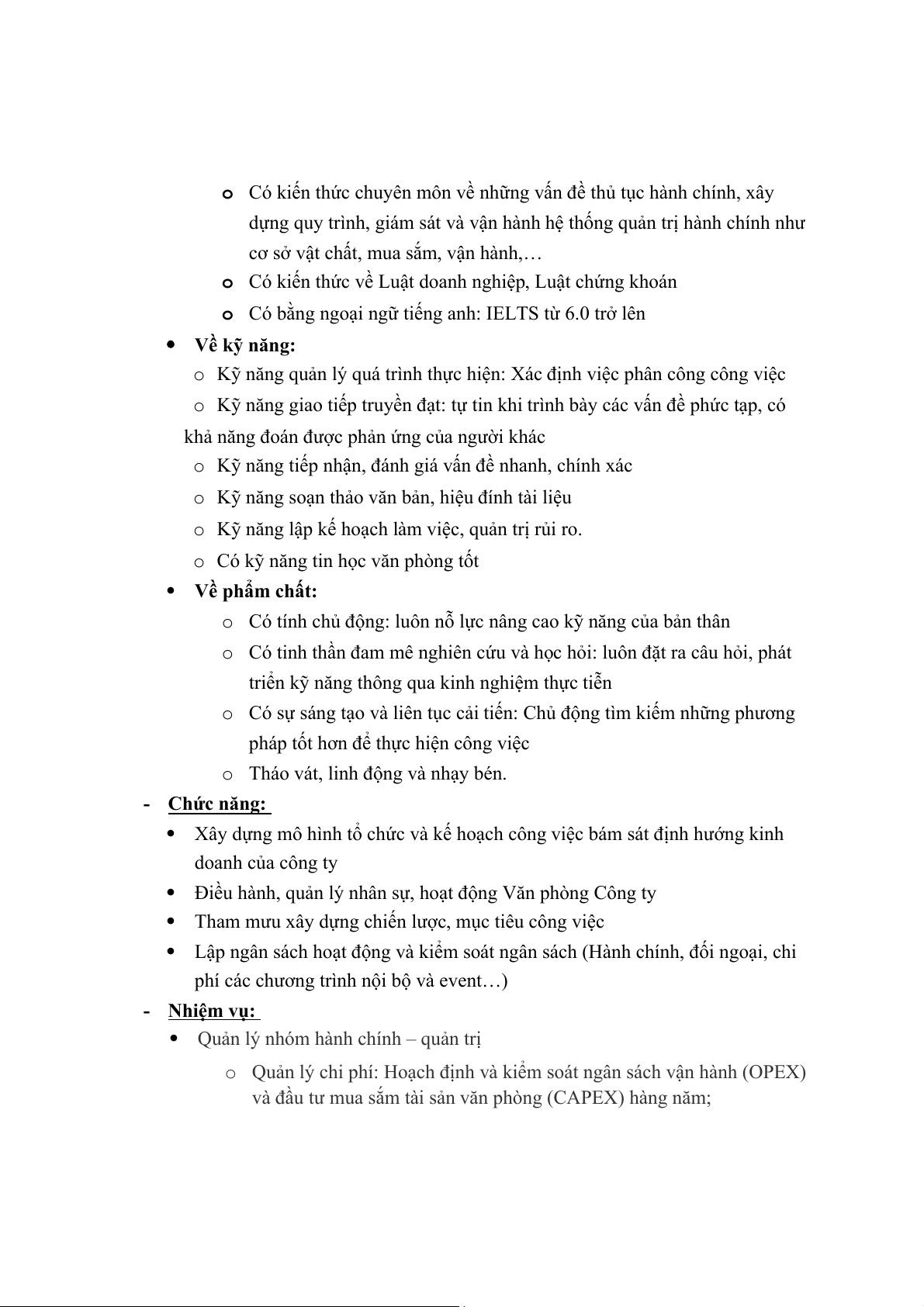 o Có kỹ năng tin học văn phòng tốt Về phẩm chất: o