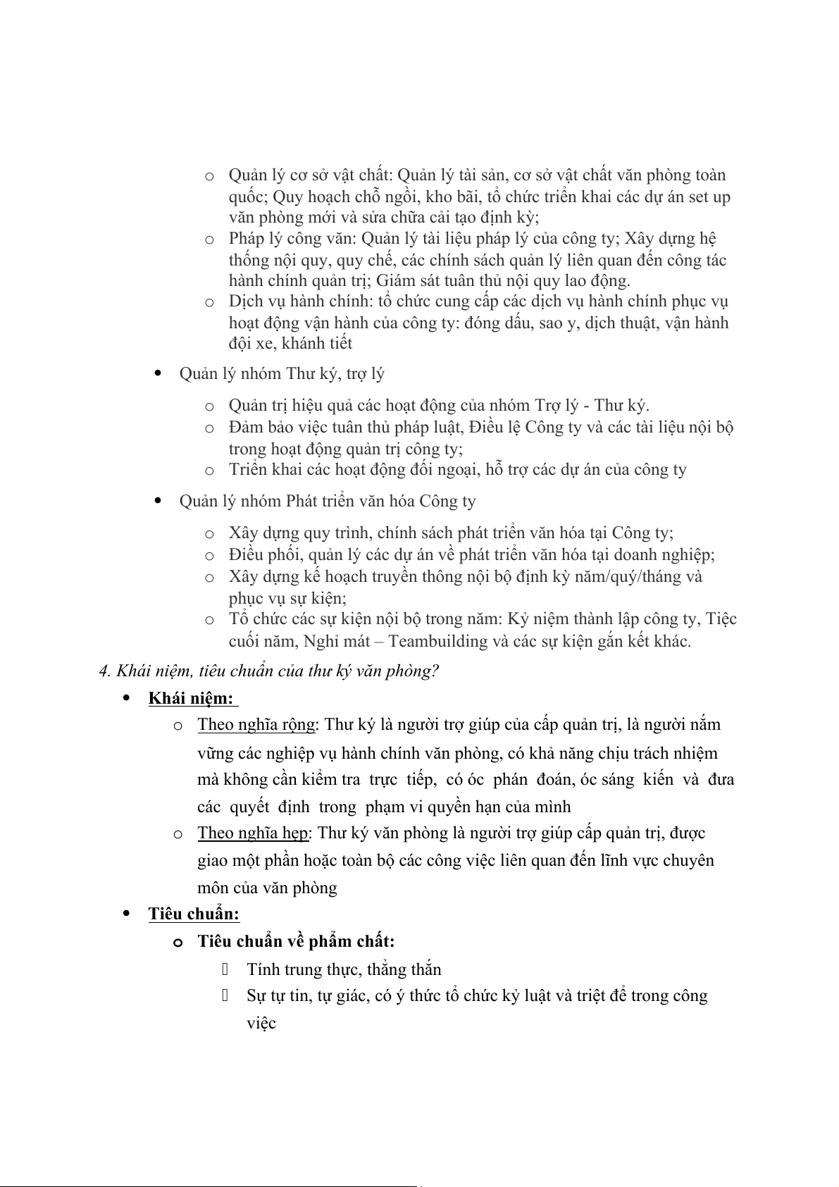 chặt chẽ các hoạt động hành chính văn phòng của các bộ phận trong doanh nghiệp. o