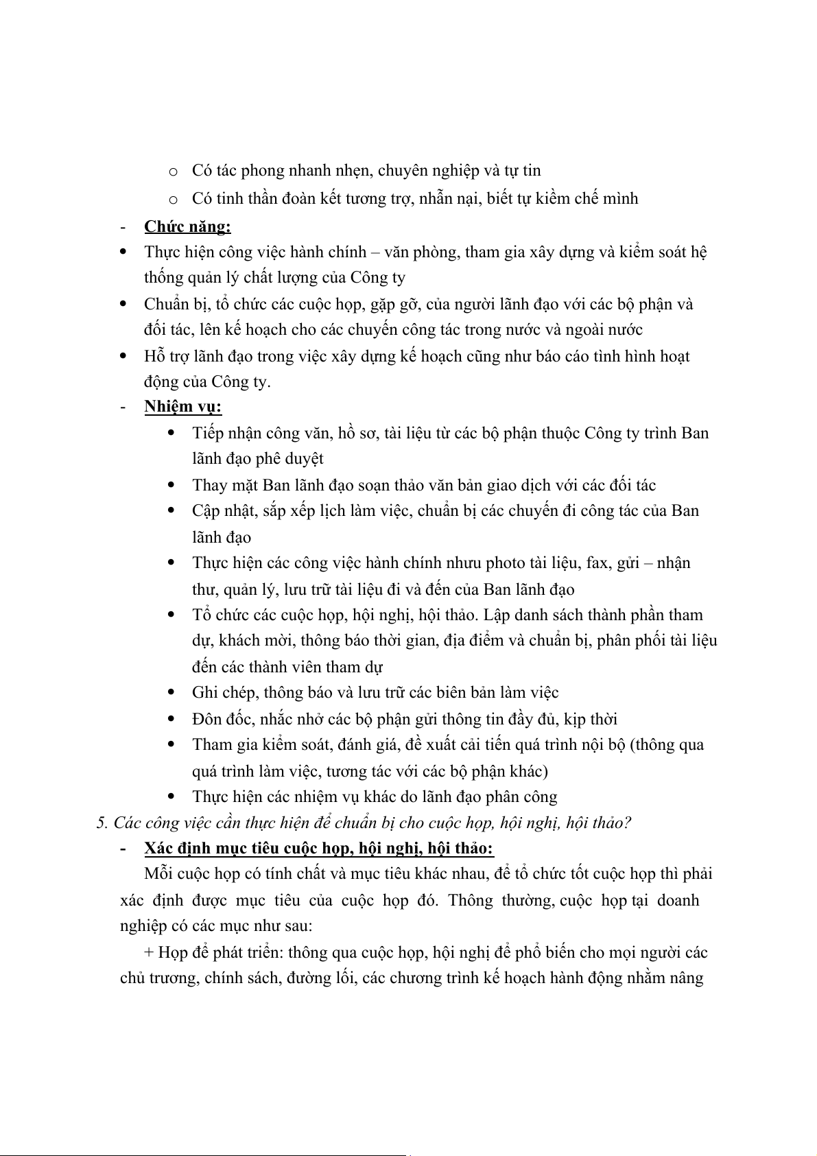 việc cho ban lãnh đạo của doanh nghiệp những giấy tờ, hành chính Nhiệm vụ: o