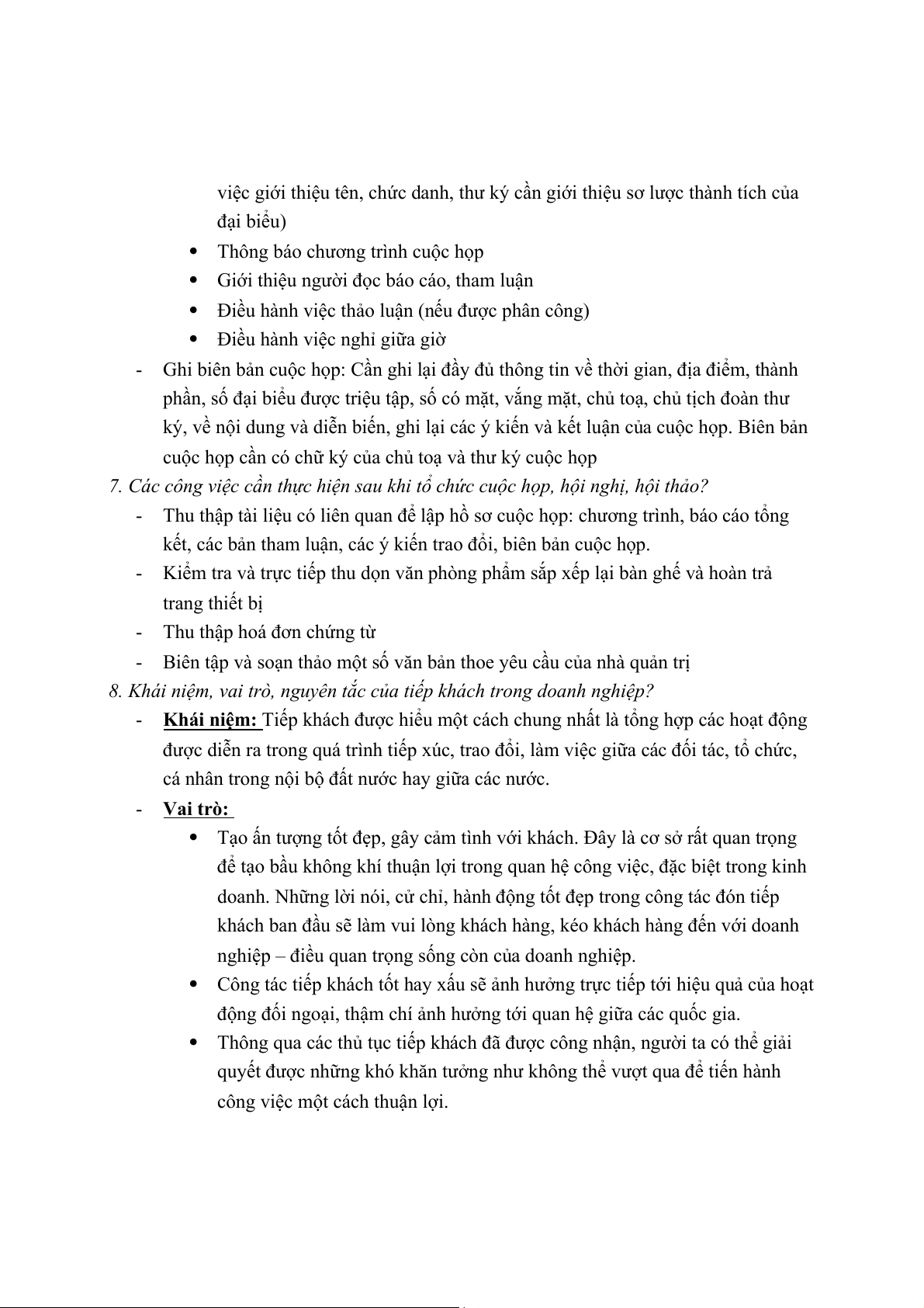 Tổ chức cuộc họp, hội nghị, hội thảo o Tổ chức tiếp khách o