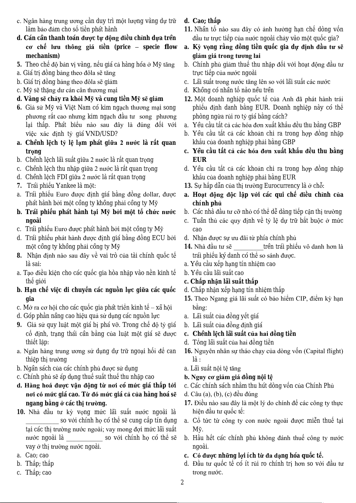2. Theo chế độ bản vị vàng, nếu giá cả hàng hóa ở Mỹ 4. Trái phiếu Yankee là một: tăng