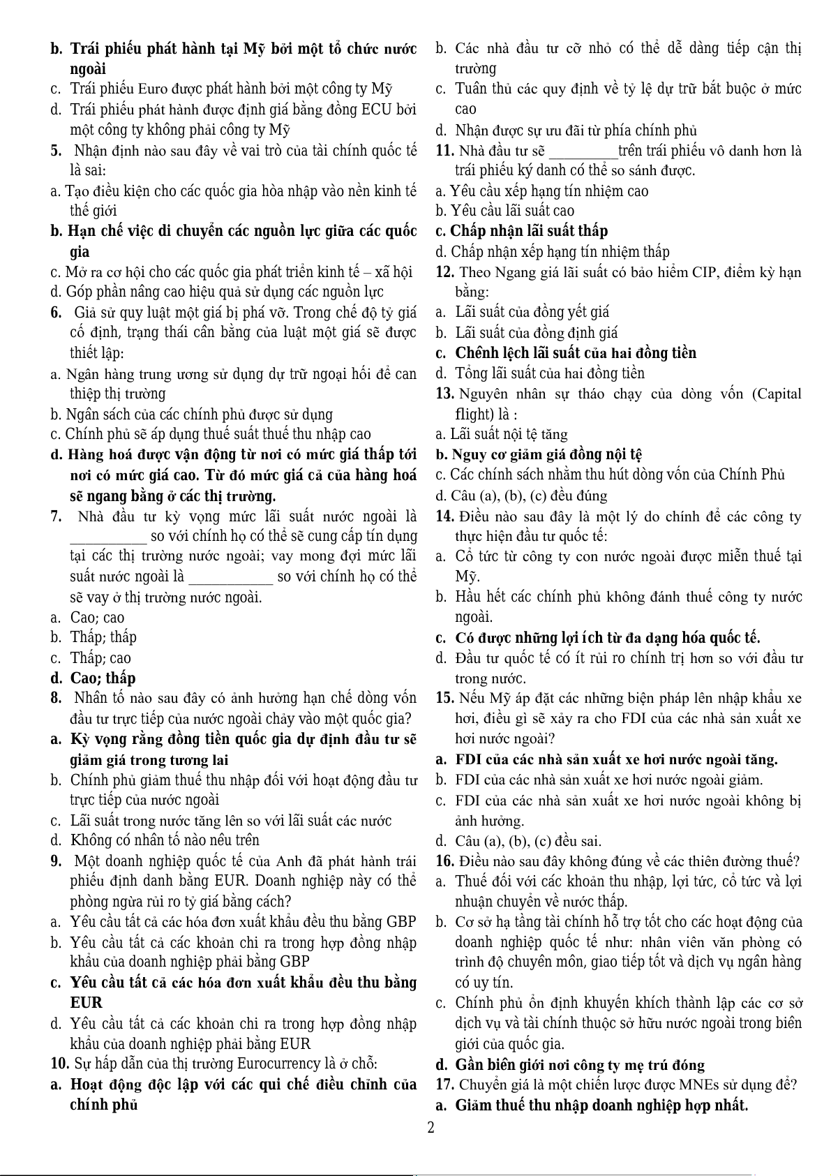5. Nhận định nào sau đây về vai trò của tài chính quốc tế 11. Nhà đầu tư sẽ _________trên trái phiếu vô danh hơn là là sai: