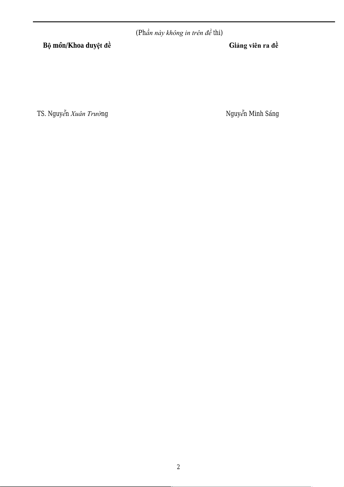 (Phần này không in trên đề thi) B môn/Khoa duy ộ ệt đề Giảng viên ra đề TS. Nguyễn ng Nguy Xuân Trườ ễn Minh Sáng 2