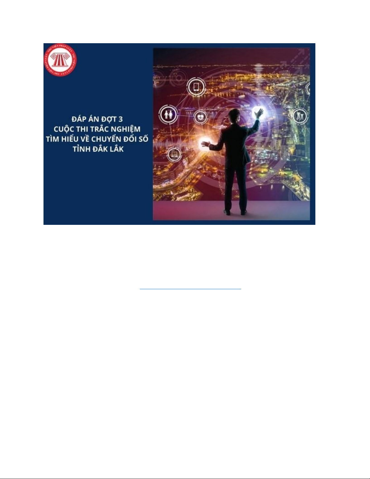 Dưới đây là đáp án đợt 3 Cuộc thi trắc nghiệm tìm hiểu về Chuyển đổi số tỉnh Đắk Lắk năm 2025:
