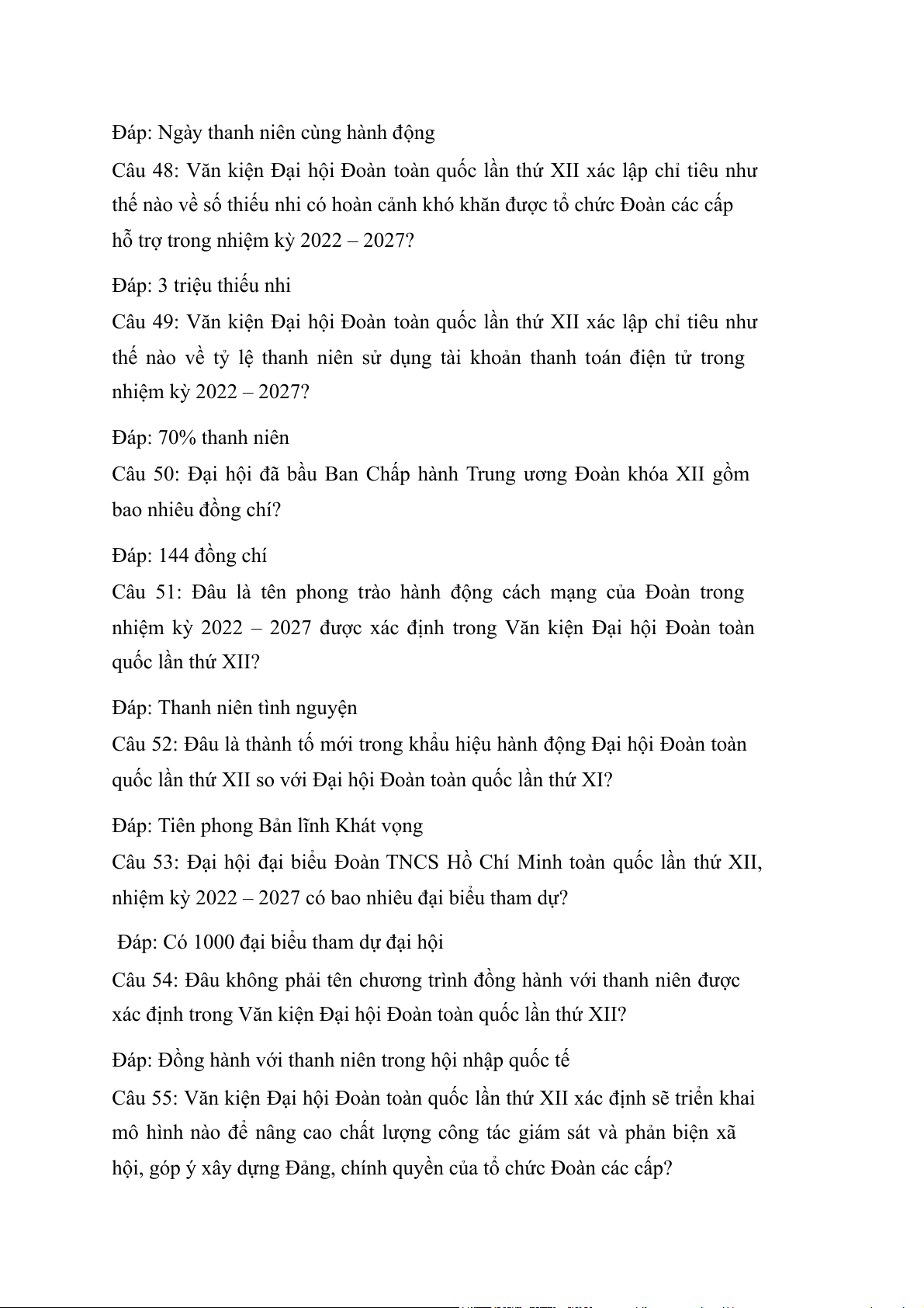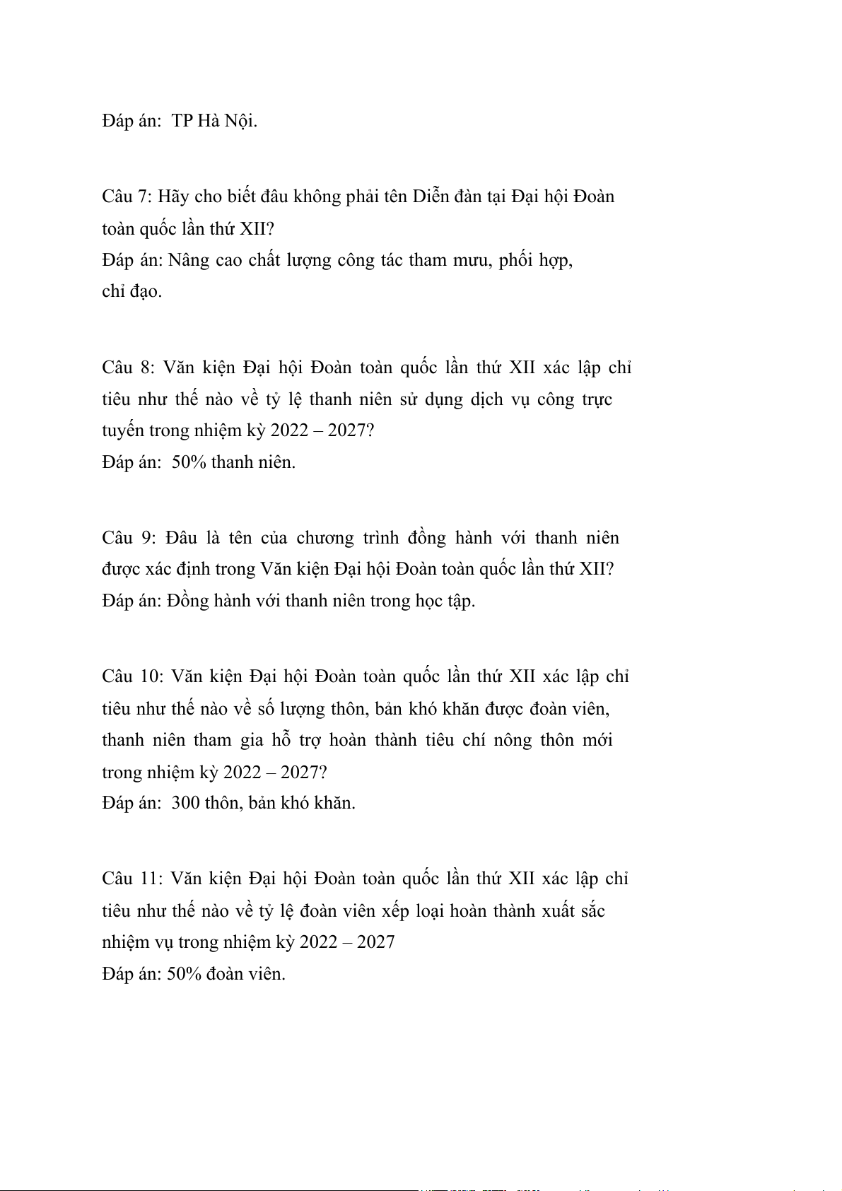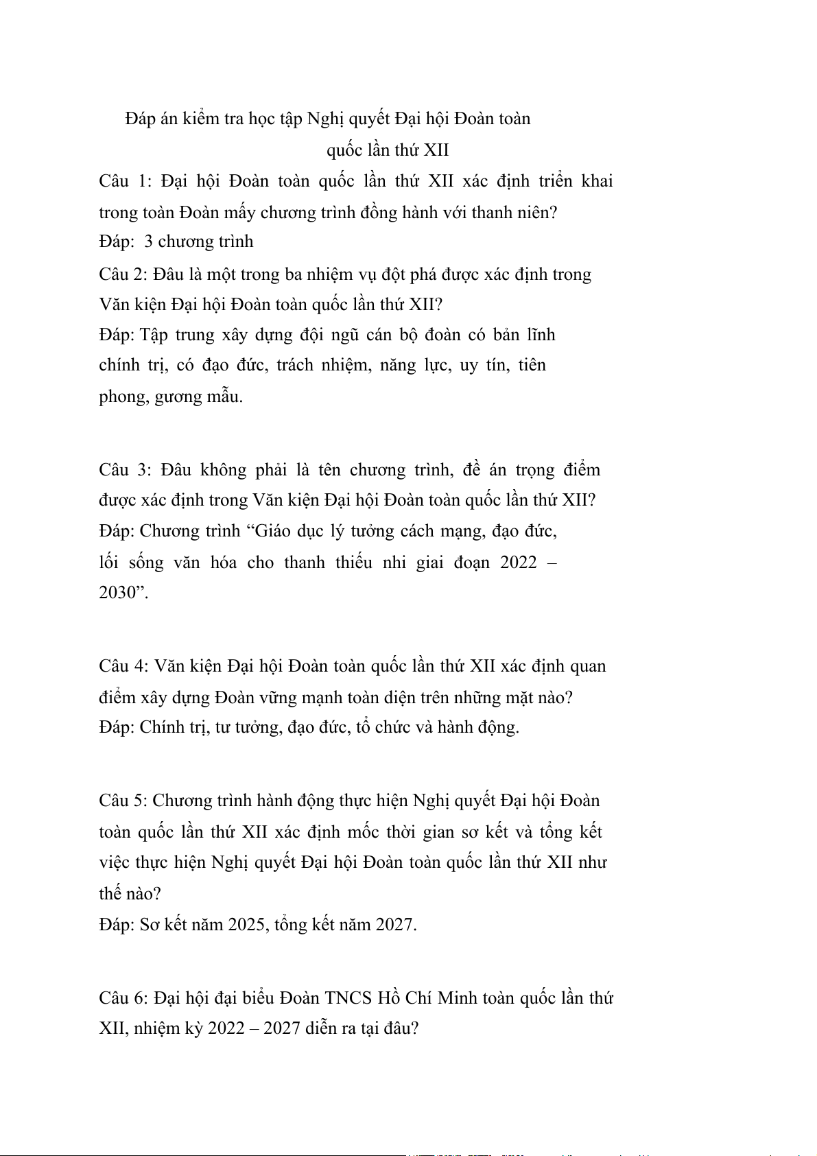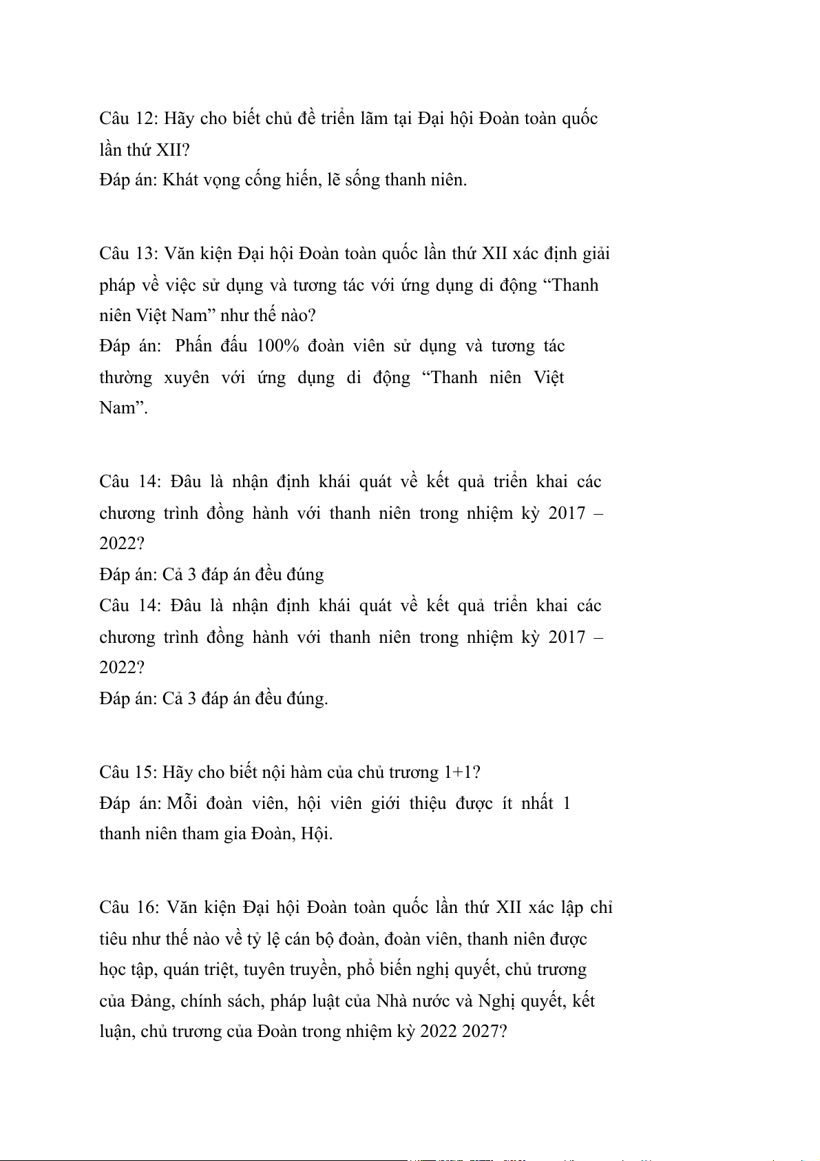 Câu 1: Đại hội Đoàn toàn quốc lần thứ XII xác định triển khai