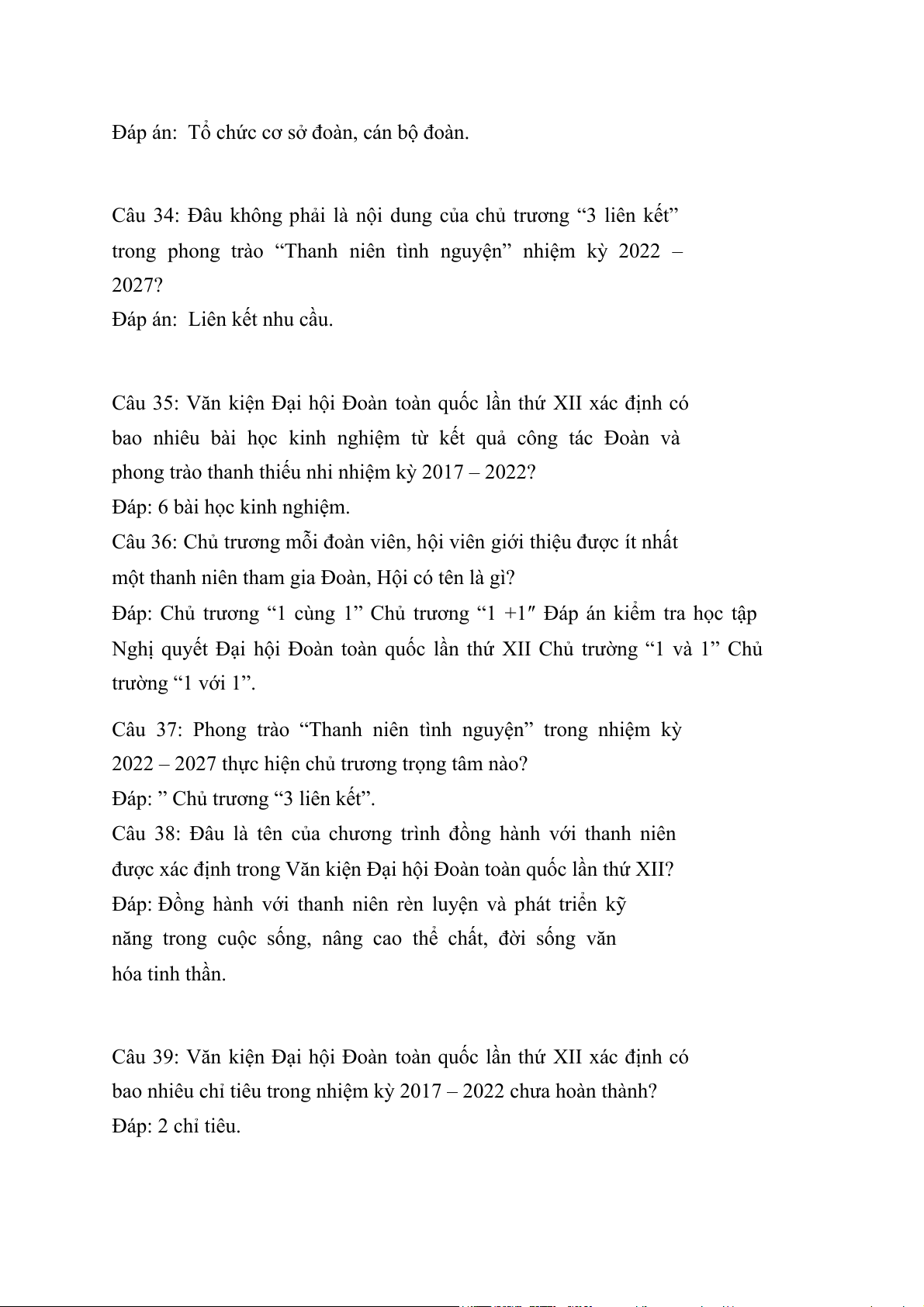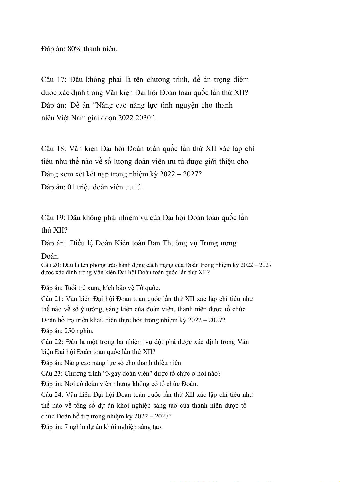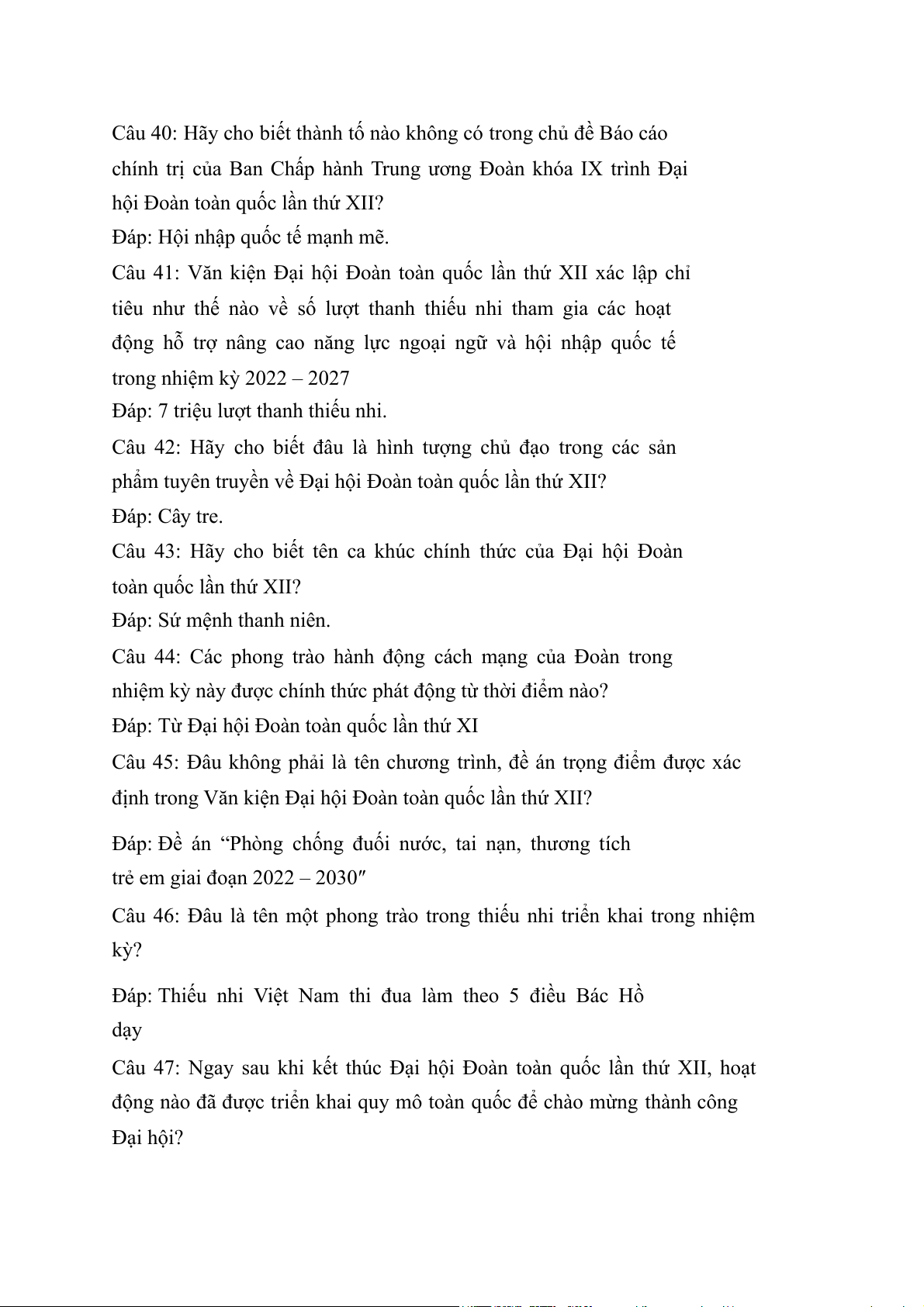 Câu 31: Văn kiện Đại hội Đoàn toàn quốc lần thứ XII đề ra giải