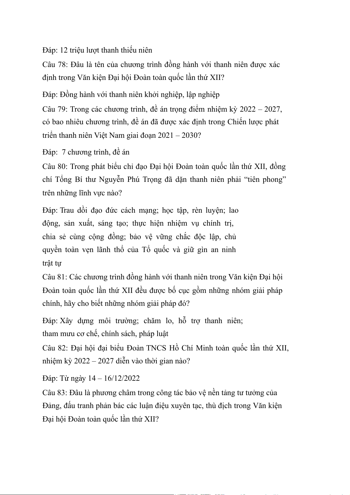 Câu 82: Đại hội đại biểu Đoàn TNCS Hồ Chí Minh toàn quốc lần thứ XII,