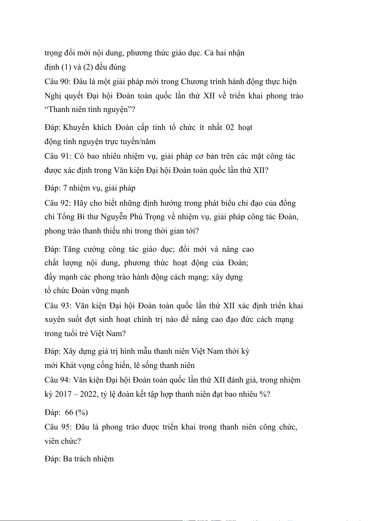 Câu 93: Văn kiện Đại hội Đoàn toàn quốc lần thứ XII xác định triển khai
