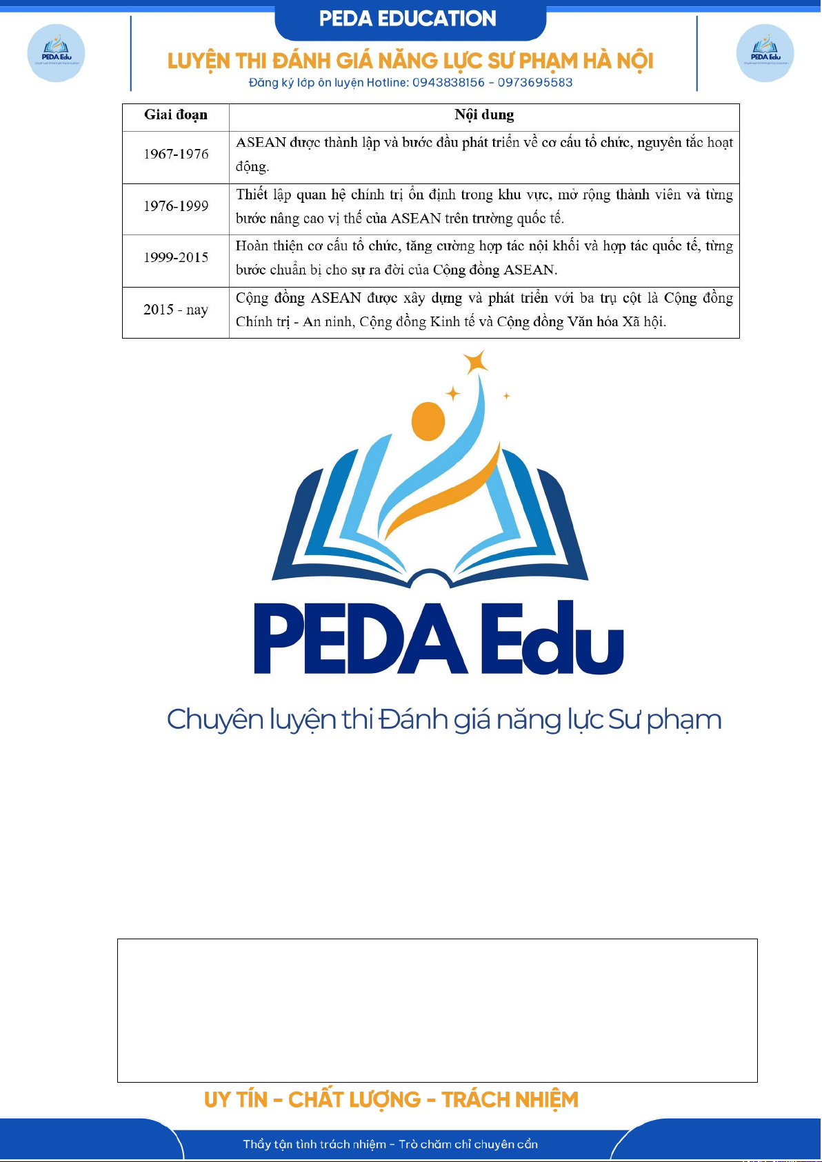 d. Bảng thông tin trên thể hiện các giai đoạn phát triển chính của Hiệp hội các quốc gia Đông Nam Á (ASEAN).